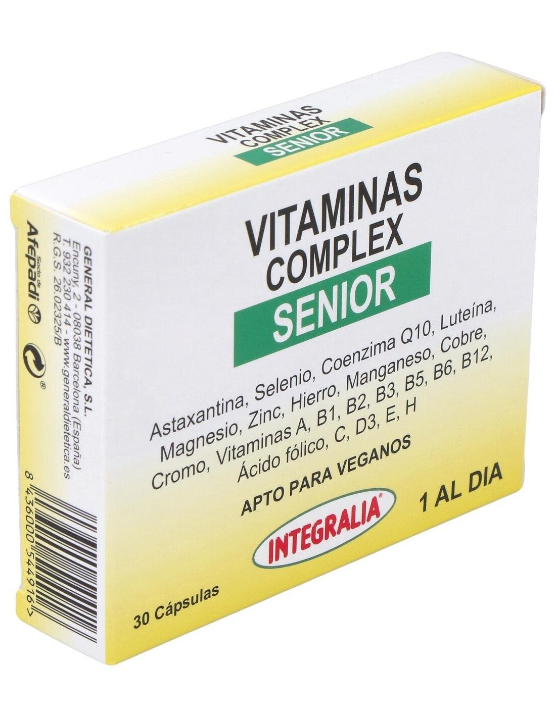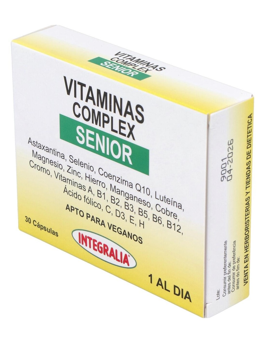 Vitaminas Complex 30Cap. de Integralia es un suplemento vitamínico para adultos que contribuye al bienestar general mediante una fórmula equilibrada de vitaminas esenciales en cápsulas fáciles de consumir.