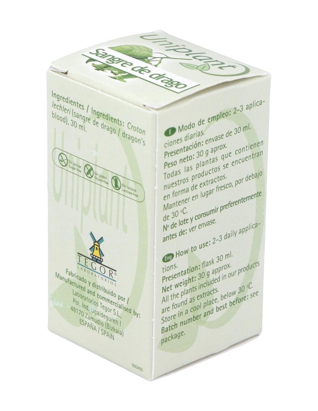 El Uniplant Sangre De Drago 30 Ml. de Tegor es un complemento natural para personas que buscan apoyar el cuidado de la piel. Facilita la protección y regeneración cutánea gracias a su fórmula concentrada de extracto vegetal.