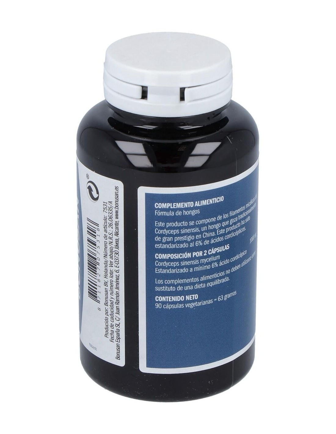 El Cordyceps sinensis es un hongo que en la naturaleza vive como parásito en los gusanos. El conjunto de los gusanos momificados y el hongo se ha utilizado tradicionalmente en forma desecada. El micelio del Cordyceps sinensis de Bonusan proviene del cultivo en sustratos y contiene solamente el micelio (hifas o filamentos) del hongo, la parte con la concentración más elevada de sustancias biológicamente activas. El cultivo se realiza sin gusanos.