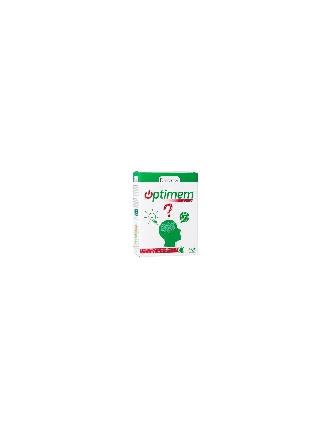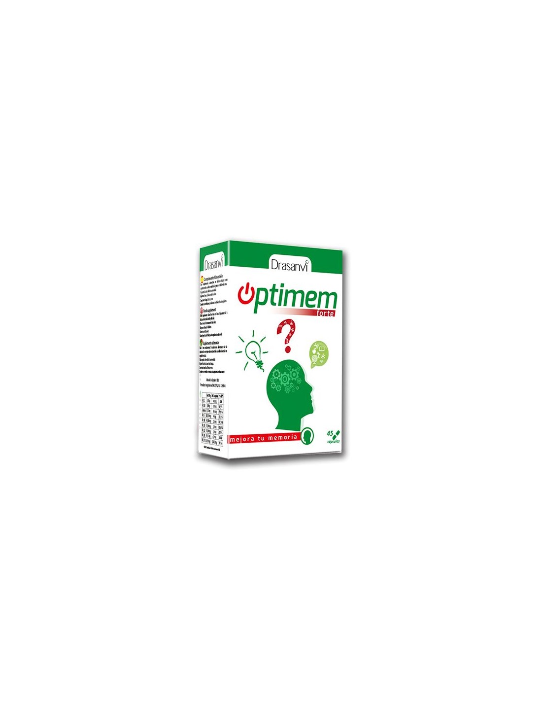 Optimem Forte 45 cápsulas Drasanvi es un suplemento nutricional para adultos que contribuye al mantenimiento de la función cerebral, formulado con ingredientes que apoyan la salud cognitiva y el bienestar mental.