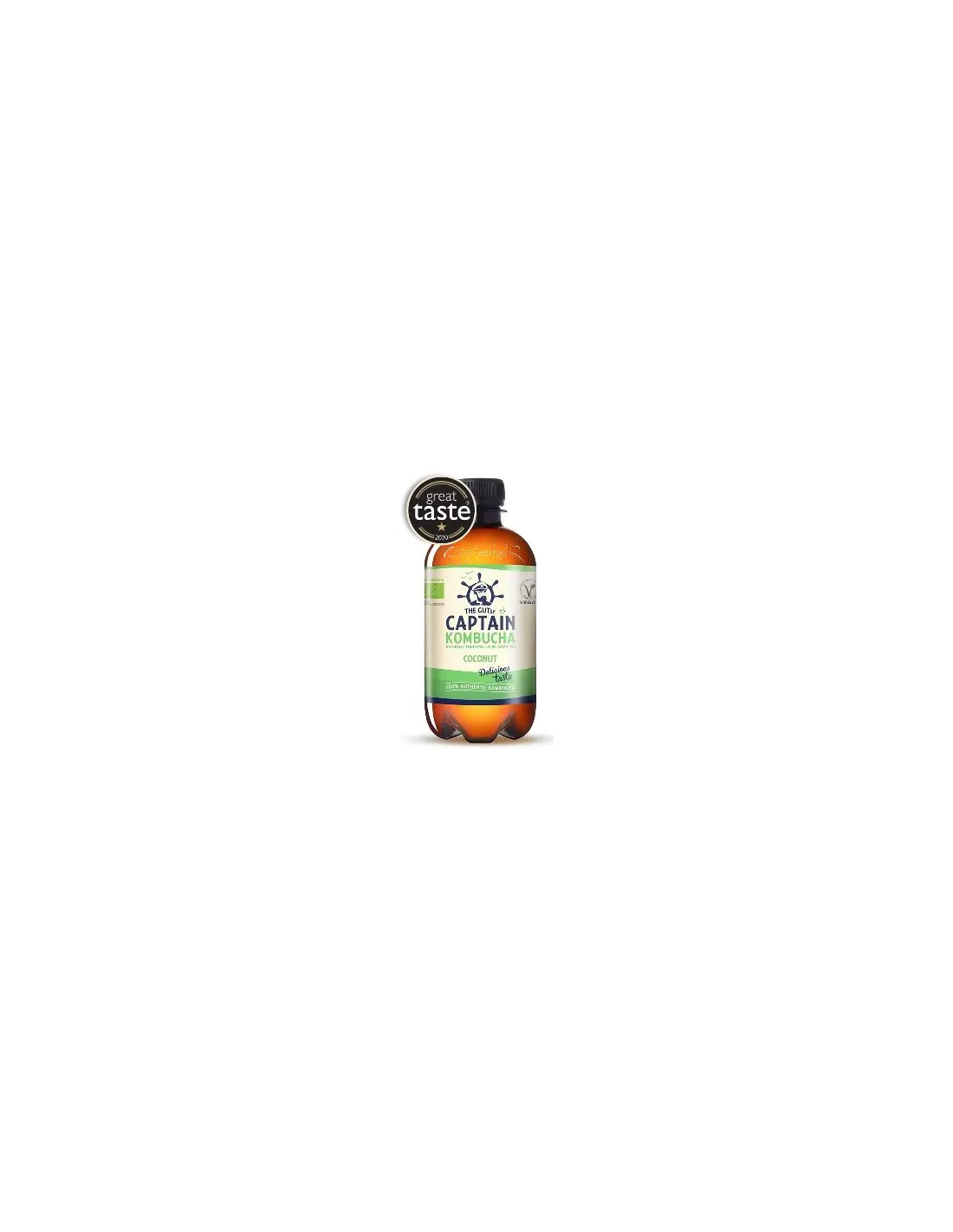 Agua filtrada, zumo de azúcar de caña evaporado (azúcar de caña fermentado), dióxido de carbono, té verde procedente de agricultura ecológica, 0,004% fermentos (bacterias y levaduras), coco procedente de agricultura ecológica 0,001%, procedente de agricultura ecológica (zanahoria, manzana, grosella negra). Agua filtrada por ósmosis inversa.