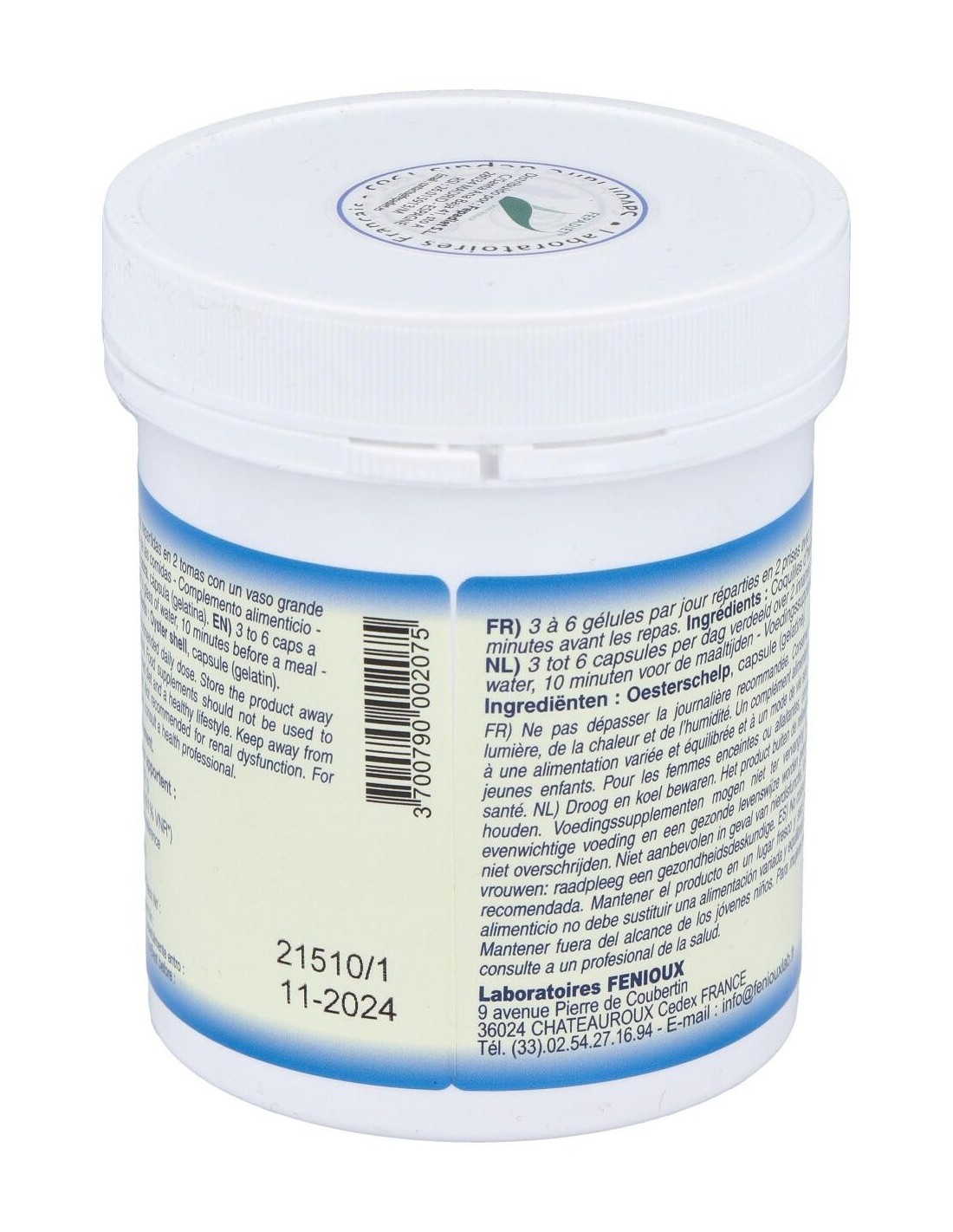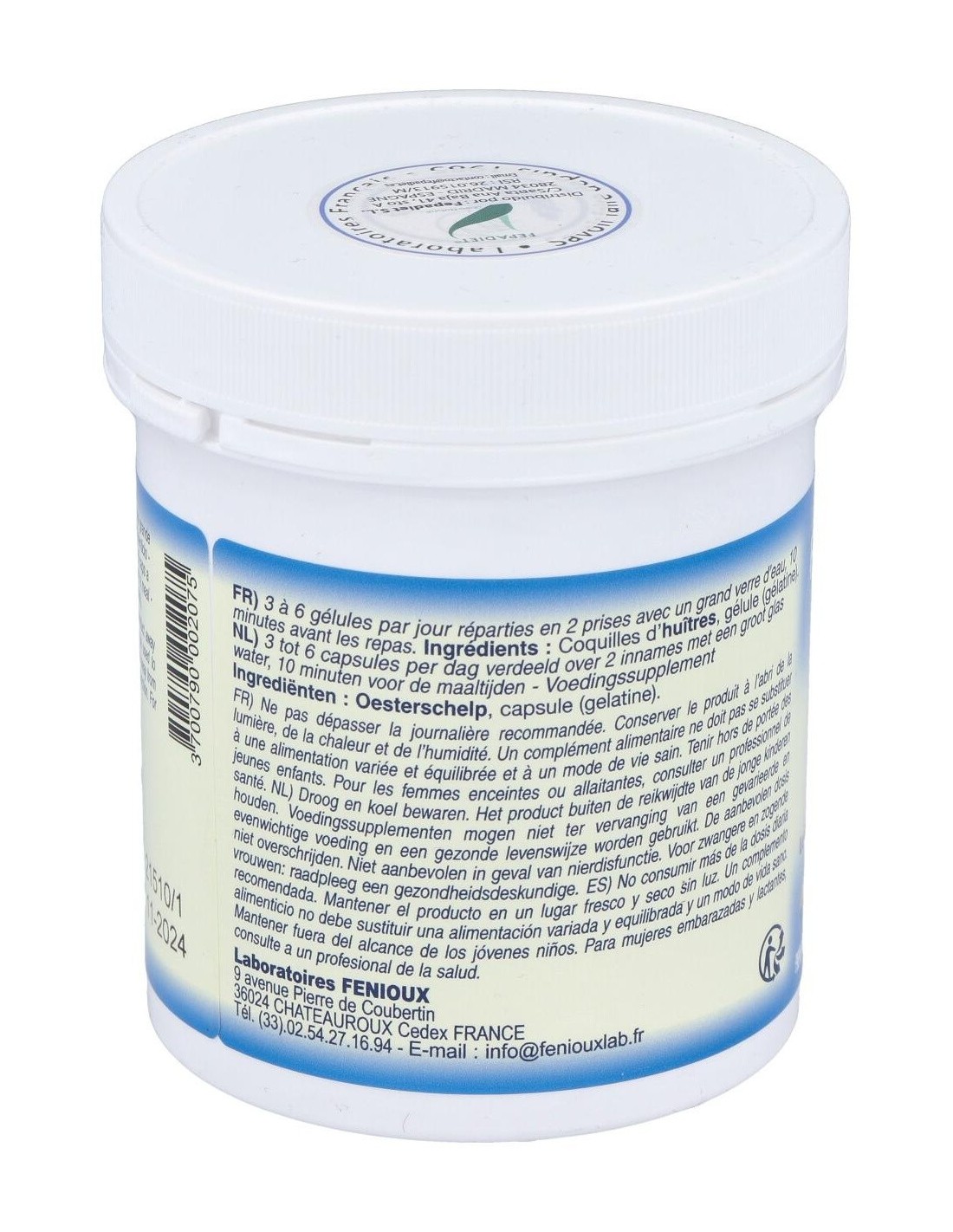 La Concha De Ostra 200Cap. de Fenioux es un suplemento dirigido a personas que buscan apoyar la salud ósea y articular, aportando minerales esenciales a través de su fórmula concentrada en concha de ostra.