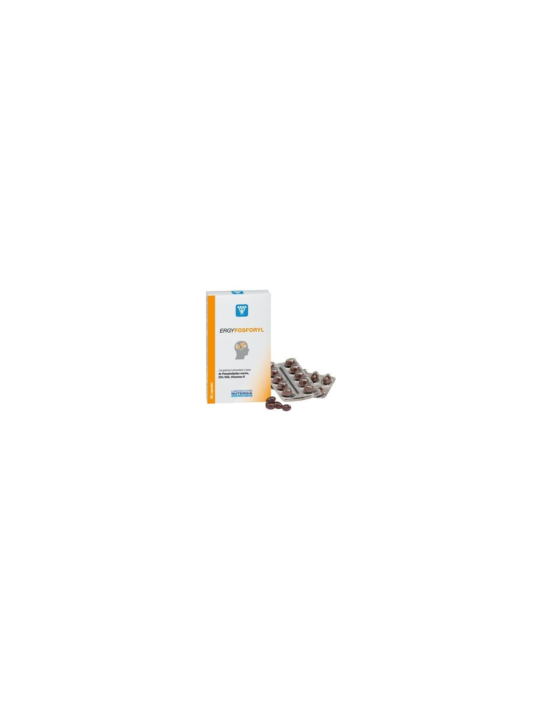 Ergyfosforyl contiene fosfolípidos marinos, aceites de pescados ricos en omega 3 y cofactores vitamínicos. Fosfolípidos y omega 3 son constituyentes esenciales de las membranas de las neuronas. El DHA ayuda al buen funcionamiento del cerebro y en particular las funciones cognitivas. Ergyfosforyl es rico en vitaminas B5 y B6, que contribuyen al rendimiento intelectual; la vitamina B5 participa en la síntesis y el metabolismo correctos de algunos neurotransmisores. Indicado en los siguientes casos: Estudiantes en periodo de exámenes, en caso de fatiga intelectual... Adultos, especialmente cuando el trabajo excesivo agota los neuromediadores. Personas mayores que desean preservar sus funciones cognitivas. Composición por dosis diaria recomendada (4 perlas): 461 mg de omega 3 marinos totales (226 mg DHA y 235 mg de EPA). 224 mg de fosfolípidos marinos totales (72 mg de fosfatidilserina, 72 mg de fosfatidilcolina, 1,5 mg de fosfatidilinositol, 6 mg de fosfatidiletanolamina y 1,5 mg de esfingomielina). 10 mg de vitamina E. 6 mg de vitamina B5. 1 mg de vitamina B6. Modo de empleo:Tomar de 2 a 4 perlas al día con las comidas. Presentación:Envase de 60 perlas.