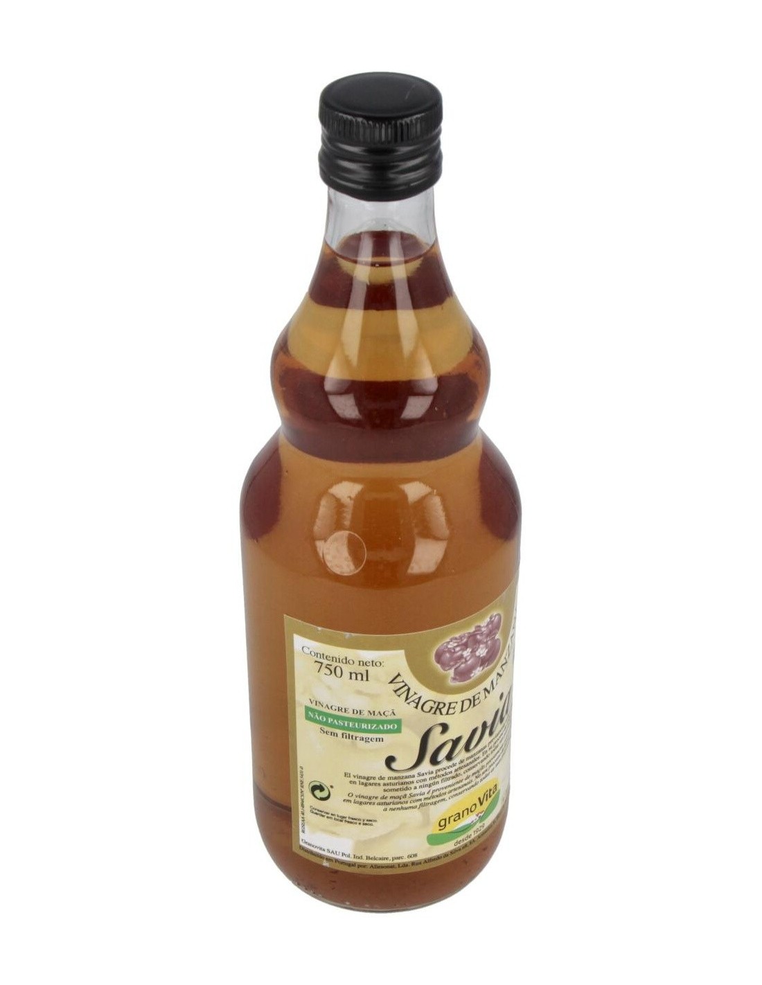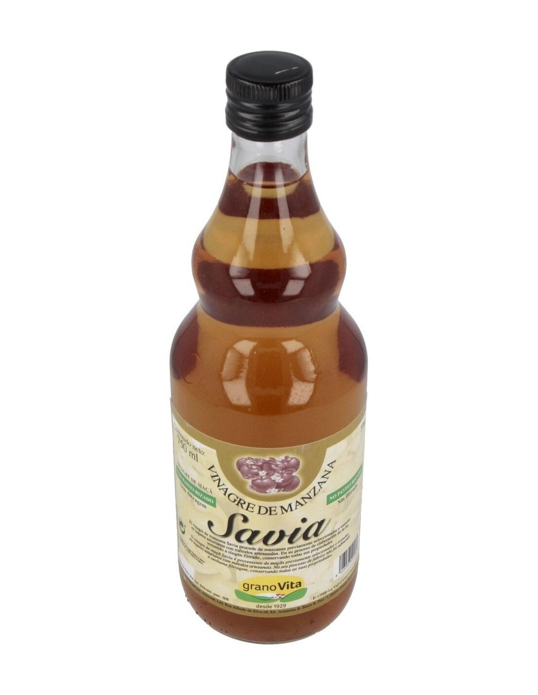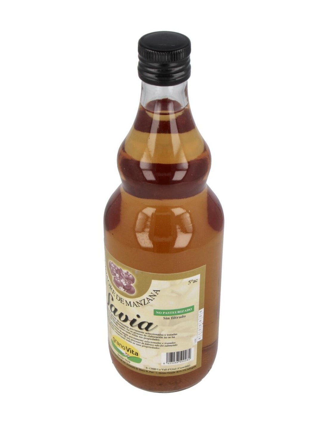 Vinagre de manzana extra virgen Granovita. Contiene 750 ml de producto en el envase. Contiene ácido acético que ayuda a mejorar los procesos digestivos mediante la expulsión de bacterias y toxinas del sistema gastrointestinal. Promueve la absorción adecuada de nutrientes para el cuerpo. Posee pectina, una fibra fácilmente soluble en agua que atrae los elementos bacterianos del intestino para evacuarlos naturalmente del cuerpo. No ha sido procesado mediante ningún mecanismo de filtrado, lo cual mantiene sus propiedades nutritivas y altas cantidades de potasio. Recomendado para usuarios con problemas de digestión leves o moderados. Uso sugerido a personas bajo régimen de alimentación orgánico. Mantener fuera del alcance de los niños. No consumir en cantidades superiores a las recomendadas. No es recomendable a pacientes con desórdenes digestivos severos. En caso de presentar reacciones negativas, consultar con el médico o nutricionista de confianza.
