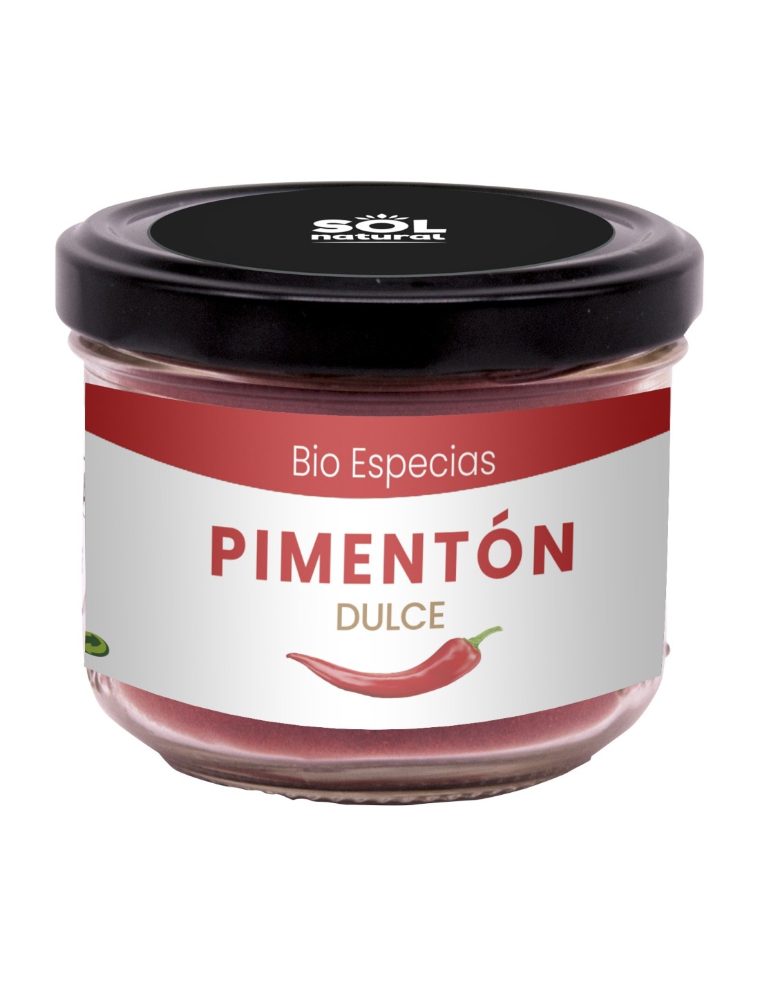 Pimentón dulce procedente de agricultura ecológica que ayuda a añadir colorante natural naranja rojizo o intensificar el sabor de múltiples platos: sofritos, guisos, arroces y sopas. Tiene un color rojo intenso y muy aromáticos, y favorece un sabor dulce y ahumado.