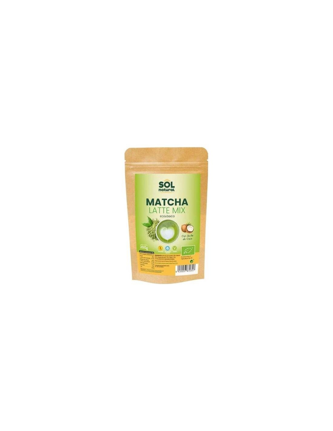 Leche de coco en polvo* 50%, matcha* 25%, proteina de arroz*, canela*.