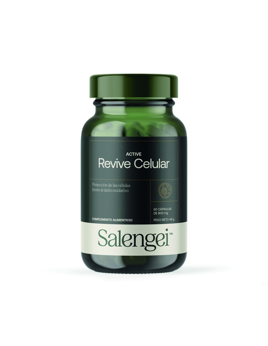 Active Revive Celular de Salengei es un complemento alimenticio con fisetina, té verde, Curcumin C3 REDUCT®, reishi, trans-resveratrol, quercetina, berberina, CoQ10, vitamina C, PQQ y astaxantina, que contribuyen al rejuvenecimiento celular, cerebral y efecto antiaging de la piel.Indicaciones: