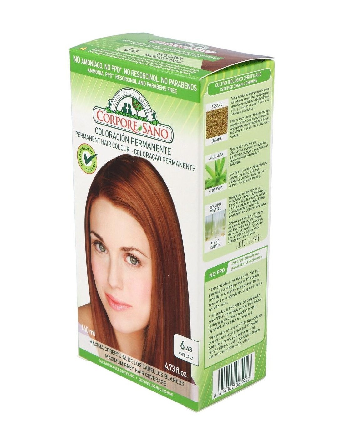 El Tinte Avellana (6.43) 140Ml. de Corpore Sano está diseñado para quienes buscan un cambio de color natural y uniforme en el cabello, con un tono cálido y equilibrado. Es adecuado para usuarios que desean una aplicación sencilla y un acabado que realza la apariencia del cabello sin comprometer su textura.