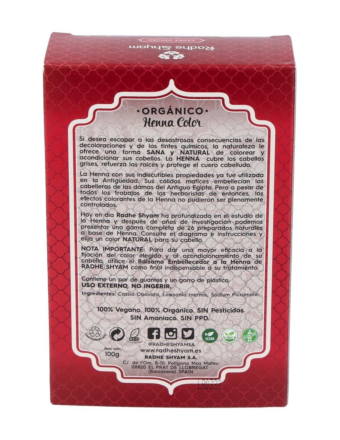 Henna Polvo Caoba Oscuro 100Gr. de Radhe Shyam
