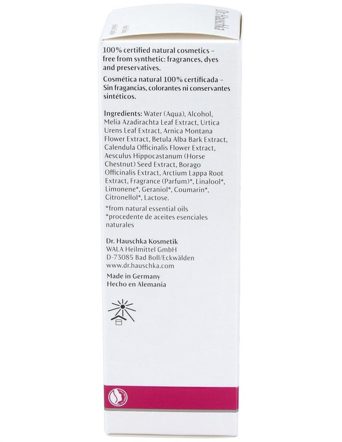 Aqua, Alcohol, Melia Azadirachta Leaf Extract, Urtica Urens Leaf Extract, Arnica Montana Flower Extract, Betula Alba Bark Extract, Calendula Officinalis Flower Extract, Aesculus Hippocastanum Seed Extract, Borago Officinalis Extract, Arctium Lappa Root Extract, Parfum*, Linalool*, Limonene*, Geraniol*, Coumarin*, Citronellol*, Lactose.