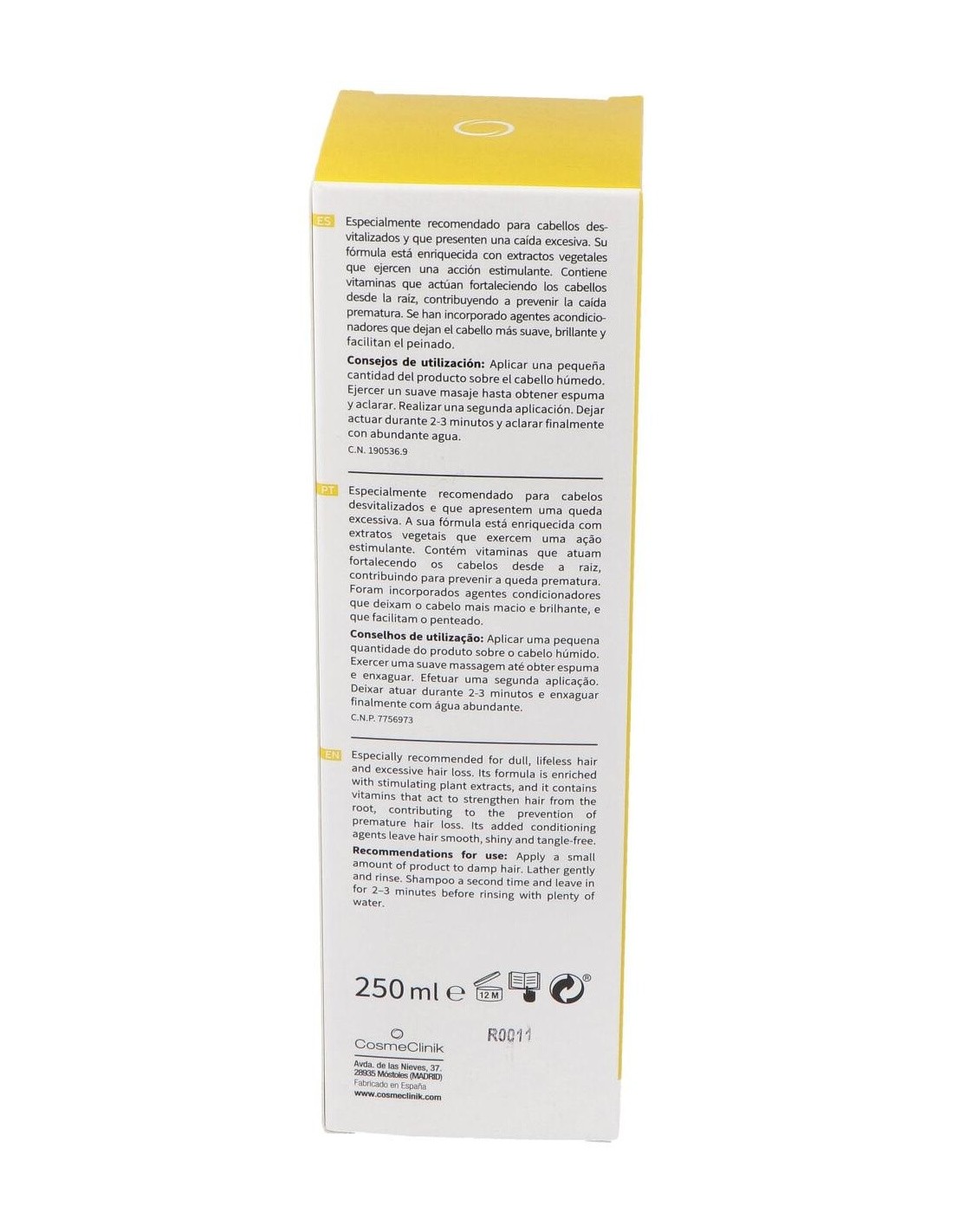 Especialmente indicado para cabellos desvitalizados y que presenten una caída excesiva del cabello. Su fórmula está enriquecida con extractos botánicos: Aquilea, Castaño de Indias y Centella que ejercen una acción estimulante sobre el cabello. Además, contiene vitaminas A, B5, B6, E, F y Biotina, que actúan fortaleciendo los cabellos. Se han incorporado agentes acondicionadores que facilitan el peinado y dejan el cabello más suave y brillante.