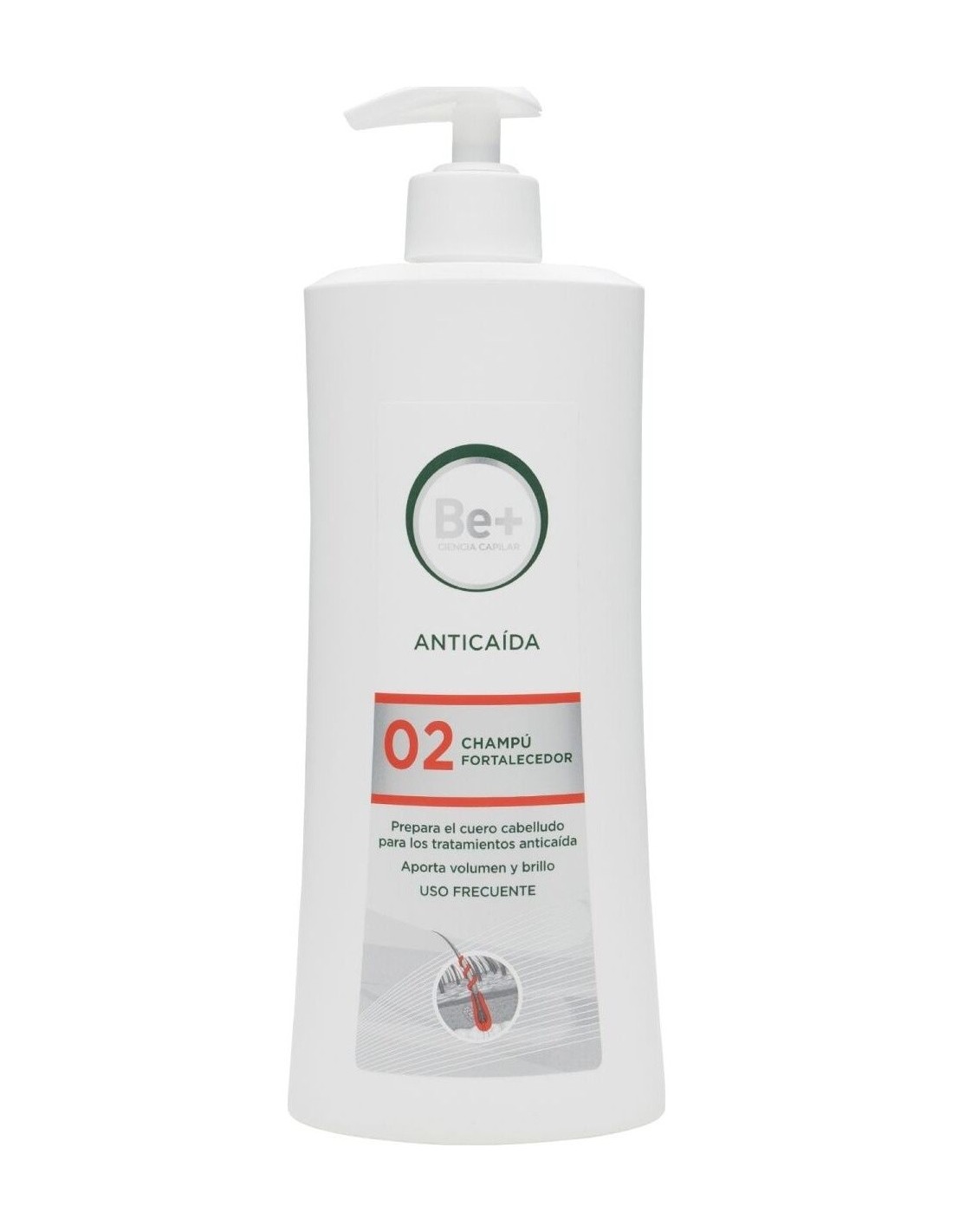 BE+Gel transparente con agradable aroma. Prepara el cuero cabelludo para los tratamientos anticaída. Aporta volumen y brillo. Uso frecuente. Fórmula reforzada con un activo que favorece un mayor anclaje de la fibra capilar al cuero cabelludo. Testado en pieles sensibles y reactivas. Test de hipoalergenicidad.