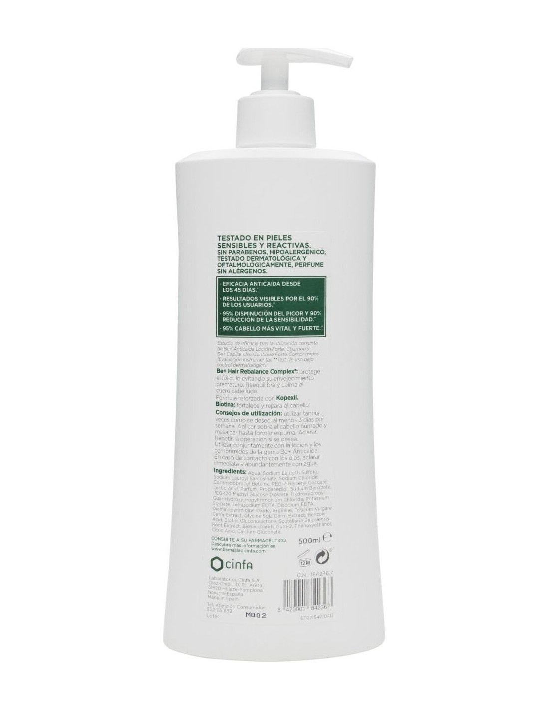 Activos:\ Be+ Hair Rebalance Complex®.\ \ Activos secundarios:\ Biotina, agentes acondicionadores de origen vegetal.