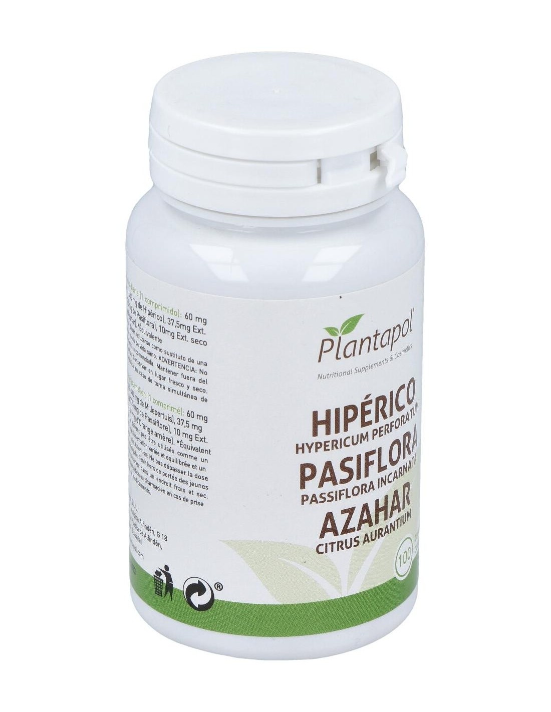 Hipérico, Pasiflora, Azahar (100 Comprimidos 500 mg) de Plantapol ofrece una alternativa basada en plantas para quienes valoran productos con formulaciones tradicionales y prácticas.