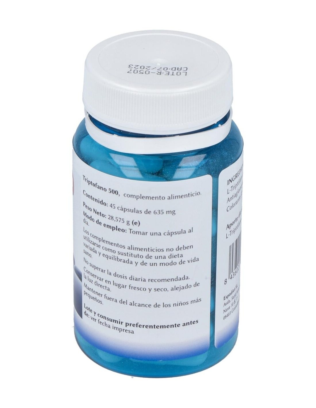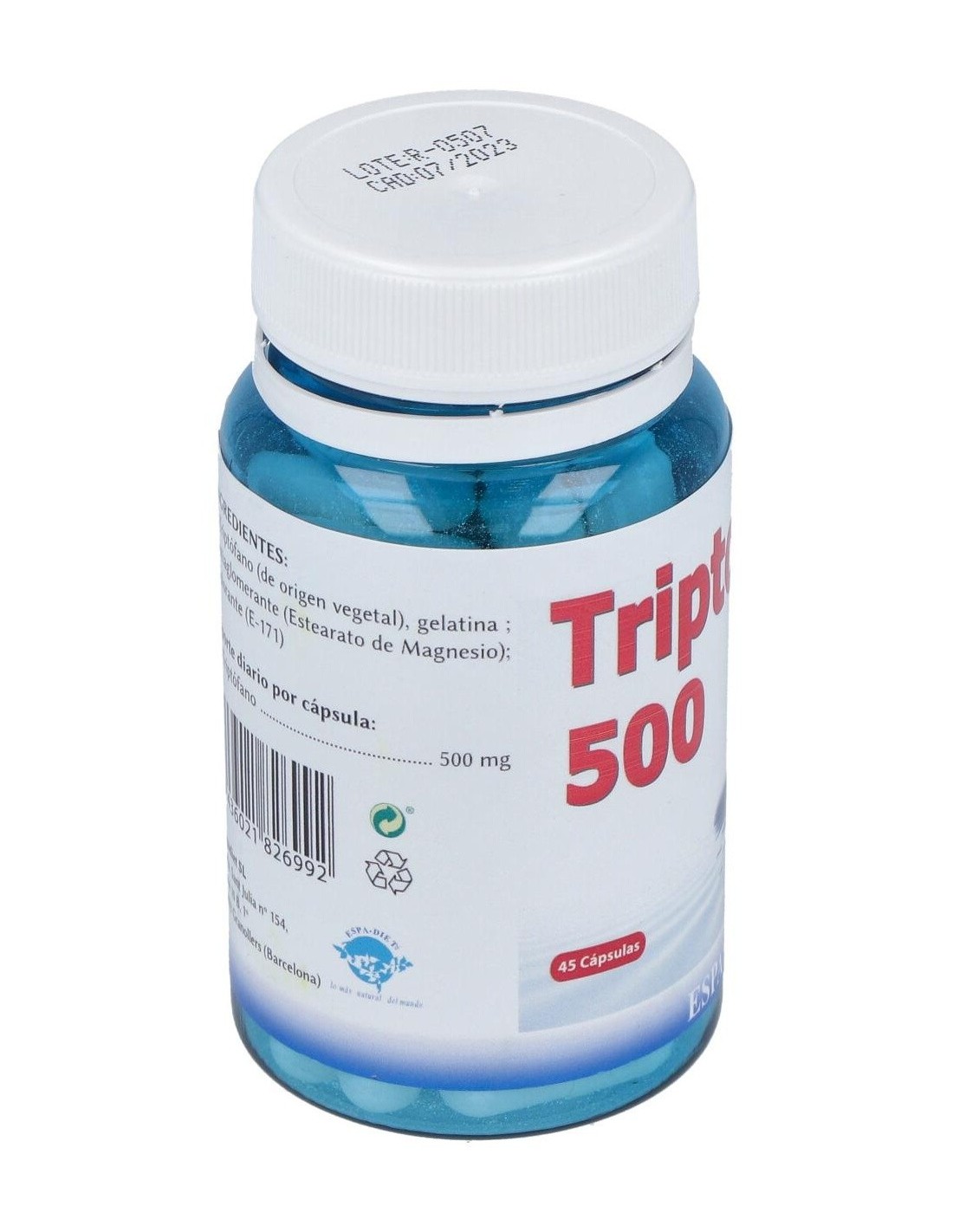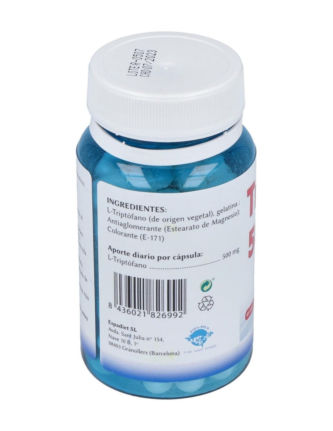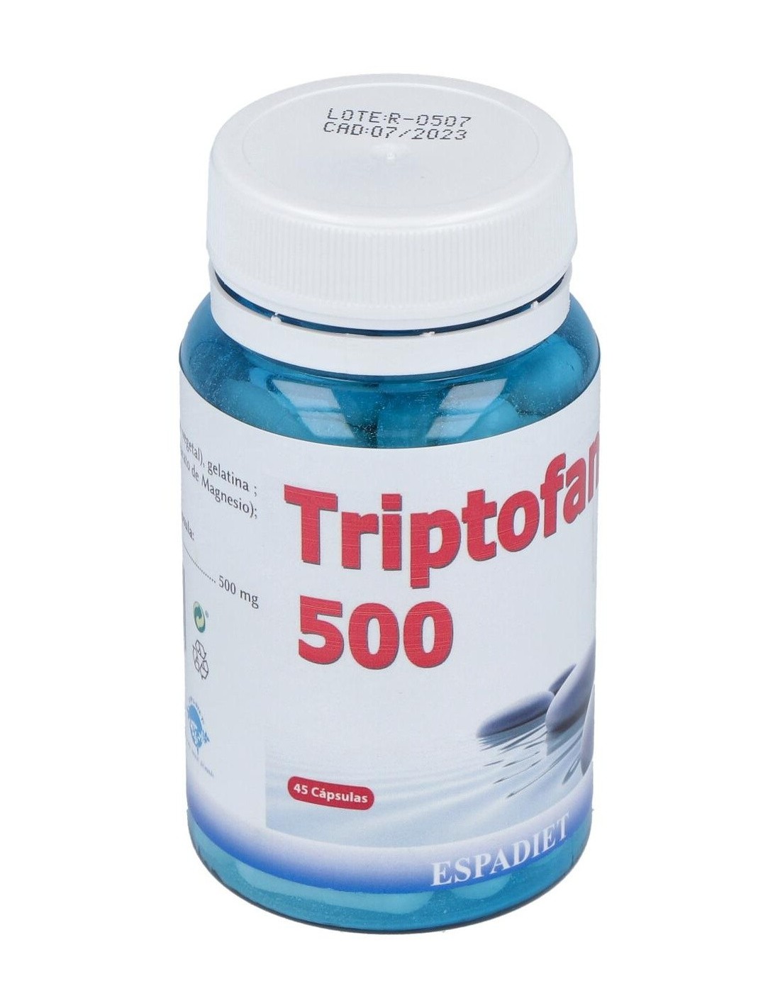 El Triptofano-500 45Cap. de Espadiet es un suplemento nutricional dirigido a personas que buscan apoyar el bienestar emocional, aportando triptófano en cada cápsula para contribuir a la síntesis de serotonina.