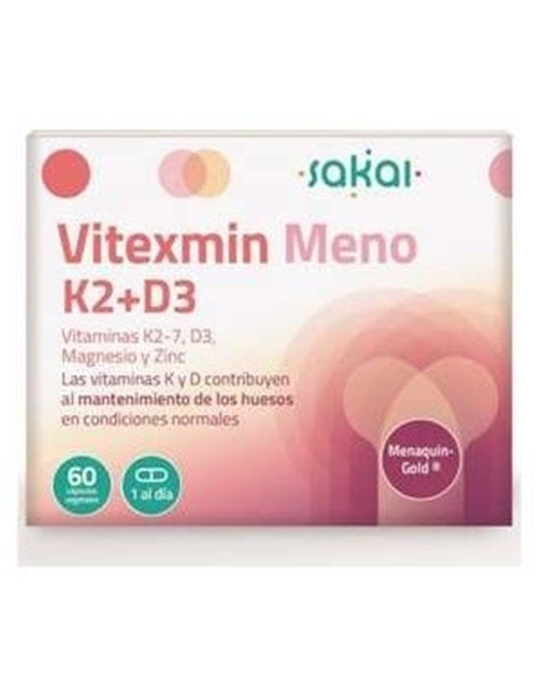 Vitexmin K2+D3 60Cap. de Sakai es un suplemento diseñado para personas que buscan apoyar su bienestar diario mediante una combinación específica de vitaminas K2 y D3. Este producto está pensado para quienes desean complementar su dieta con nutrientes que contribuyen al mantenimiento de funciones corporales esenciales.