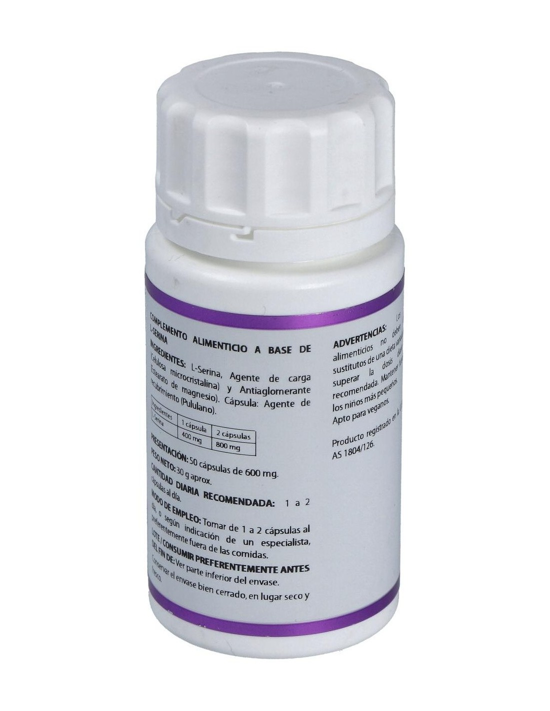 - Cada cápsula contiene L-Serina, un aminoácido que participa en procesos celulares esenciales para el organismo. - Presentación en envase de 50 cápsulas, facilitando una dosificación práctica y controlada. - Fórmula desarrollada para integrarse fácilmente en rutinas diarias de suplementación. - Producto elaborado bajo estándares de calidad que garantizan la pureza de sus ingredientes.