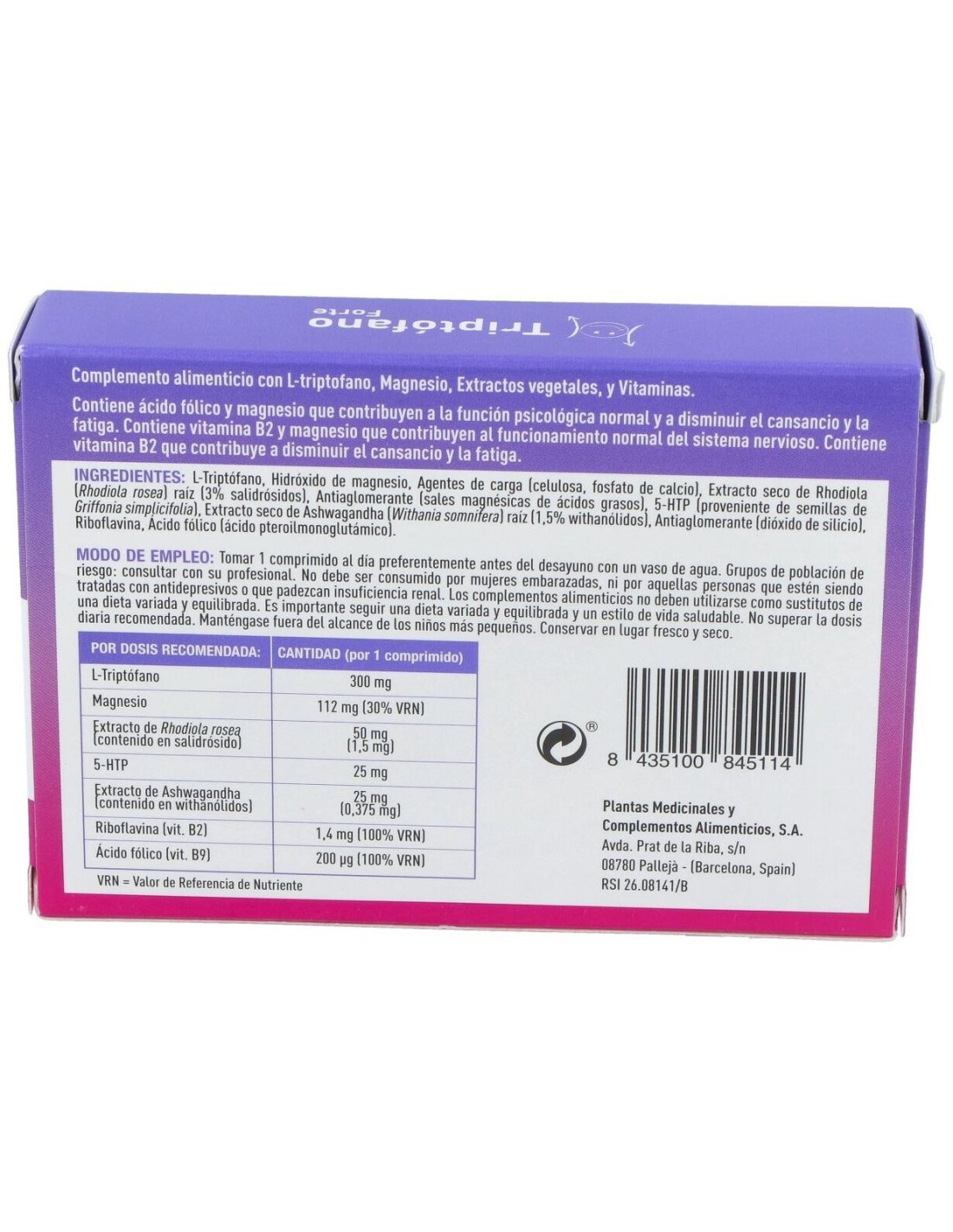 El Triptofano Forte 30Comp. de Plameca es un suplemento nutricional dirigido a adultos que buscan apoyar el bienestar emocional, formulado con triptófano para contribuir a la regulación del estado de ánimo.