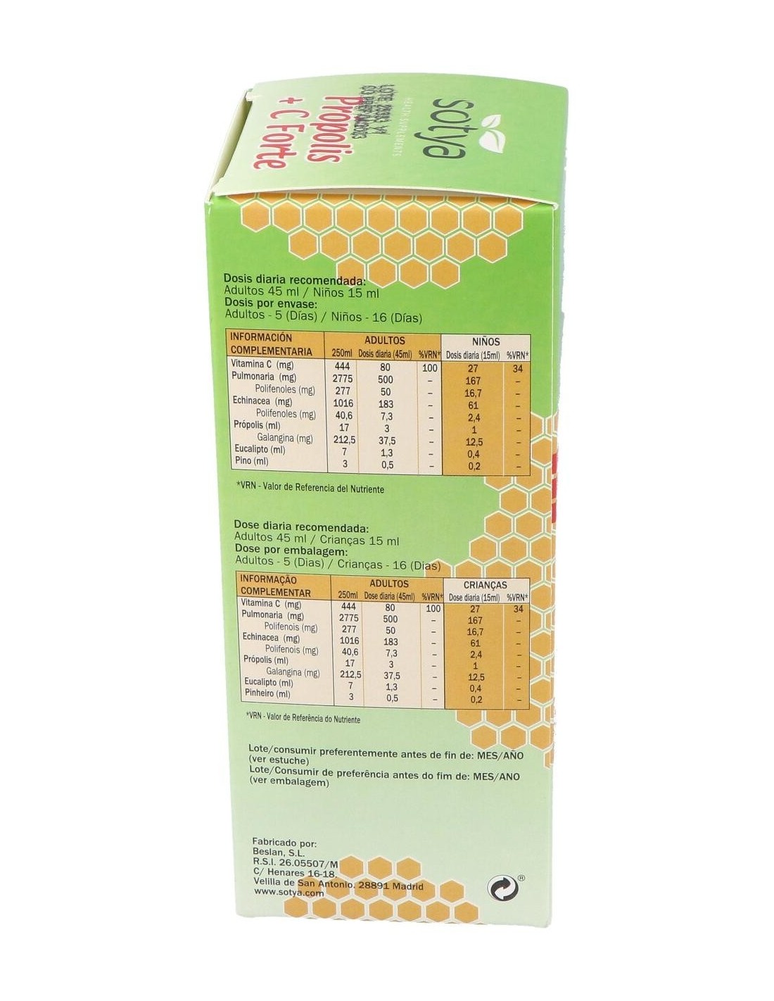 El Própolis+C Forte 250Ml Líquido de Sotya es un suplemento natural para personas que buscan apoyar su bienestar diario, combinando própolis y vitamina C para contribuir a la protección del organismo.