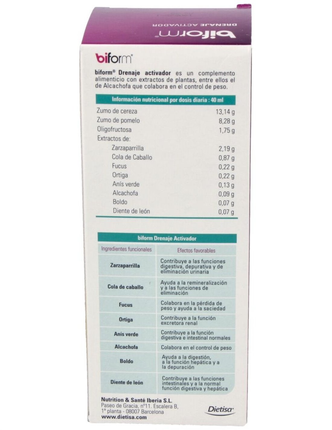 Biform Drenaje Activador es un complemento alimenticio que ayuda a controlar el peso y eliminar los líquidos del organismo, por lo que es ideal para personas que realicen dietas de control de peso o tengas problemas de retención de líquidos. Gracias a Biform podrás seguir un etilo de vida saludable y obtener el peso que deseabas en poco tiempo ya que sus productos contienen propiedades que permiten absorber las grasas ingeridas y reducir el aporte de calorías.