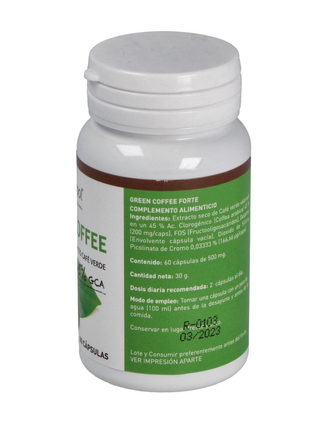 Complemento nutricional idóneo para favorecer la pérdida de peso por su gran poder quemagrasas, diurético y drenante. Elaborado con Café Verde, es el grano del café sin tostar y tiene alto contenido en ácido clorogénico, el cual evita la infiltración de grasa y activa la enzima adenylate cyclose, que es capaz de estimular el metabolismo de los lípidos. Favorece la pérdida de peso al saciar el apetito. Además el ácido clorogénico tiene un efecto beneficioso sobre el metabolismo de la glucosa, ya que se reduce su absorción y disminuye el máximo hiperglucémico, al interferir en la actividad de enzimas digestivas del intestino, aumentando el nivel de azúcares y grasas eliminados. Entre otros muchos más beneficios, además es un excelente antioxidante.