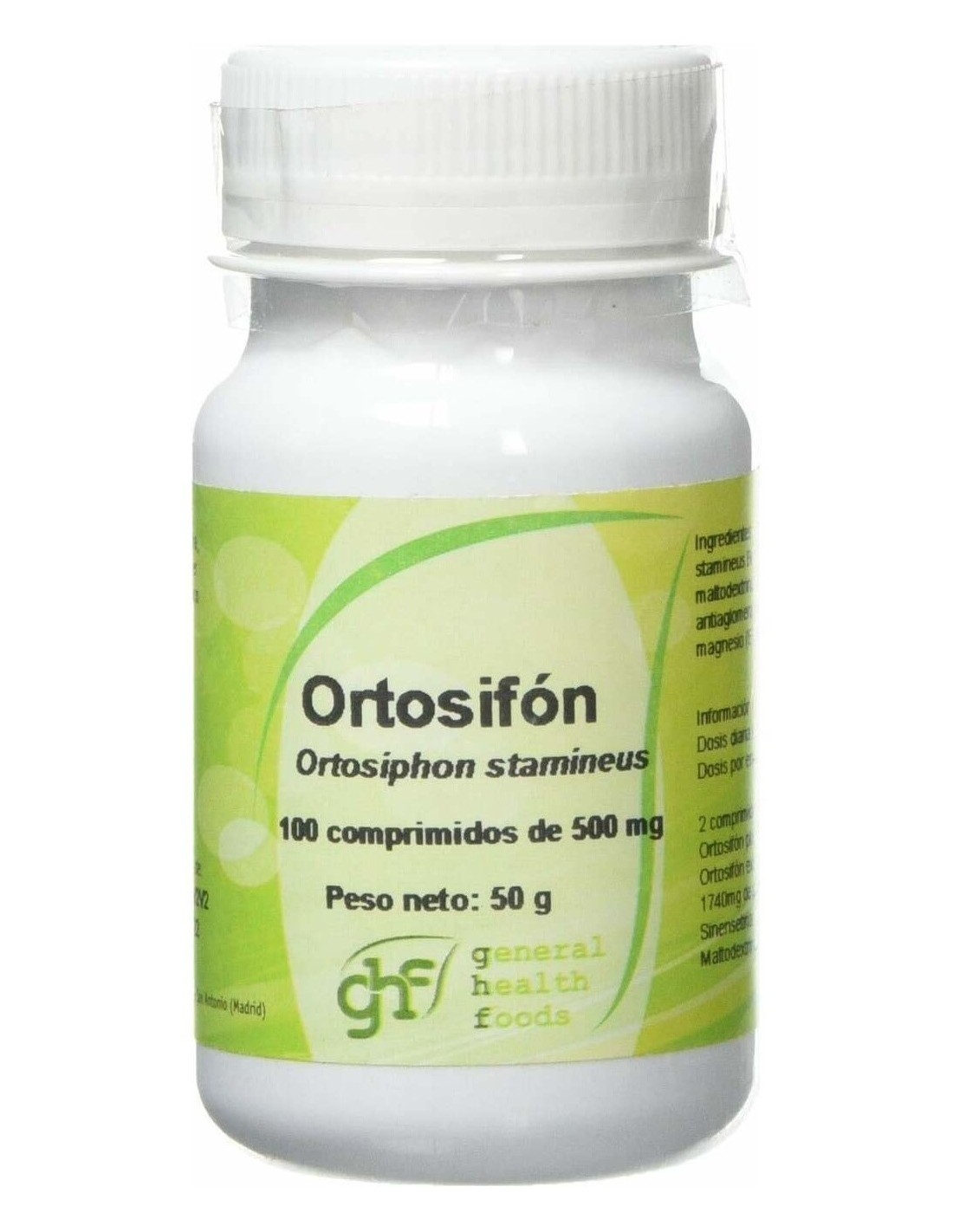 GHF Ortosifón 500mg es un complemento alimenticio que te ayudará a depurar el organismo, favoreciendo la excreción de líquidos, toxinas y cloruro. En concreto, el ortosifón es útil para reducir el exceso de urea y de ácido úrico.