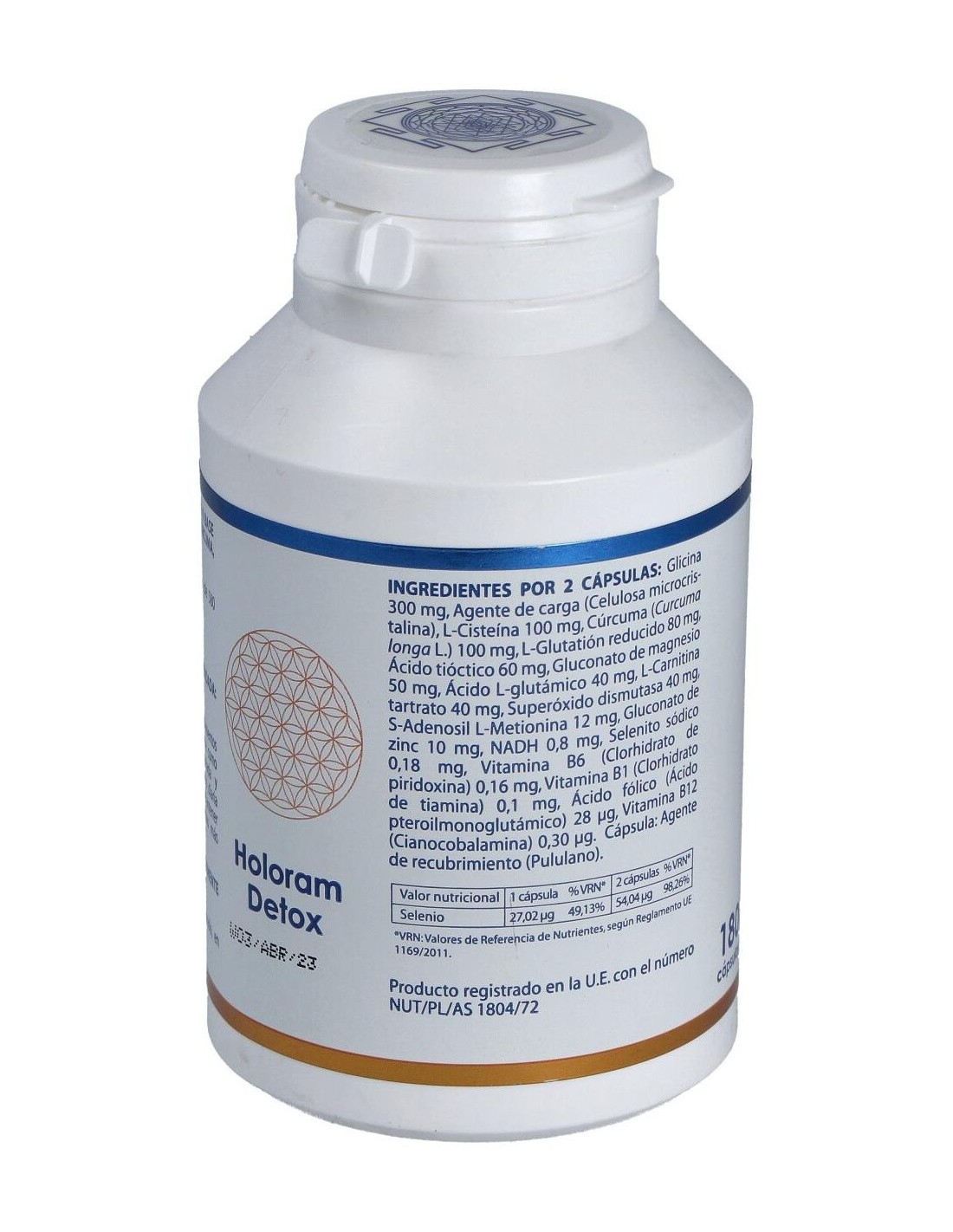 Holoram Detox es un complemento alimenticio bio-regulador de los sistemas de drenaje de toxinas. Gracias a su formulación posee un efecto inductor que favorece las vías antioxidantes y quelantes necesarias para la eliminación de los desechos tóxicos, en la célula y el tejido intersticial.