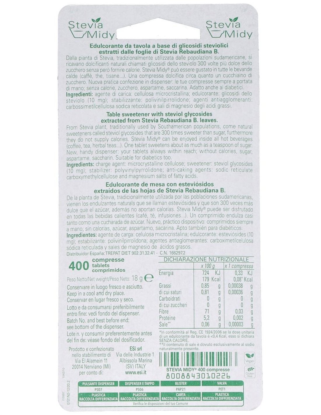 1 comprimido endulza el equivalente a una cucharadita de azúcar. Endulzar según preferencia personal (tisanas, leche, batidos, té, café, etc.).
