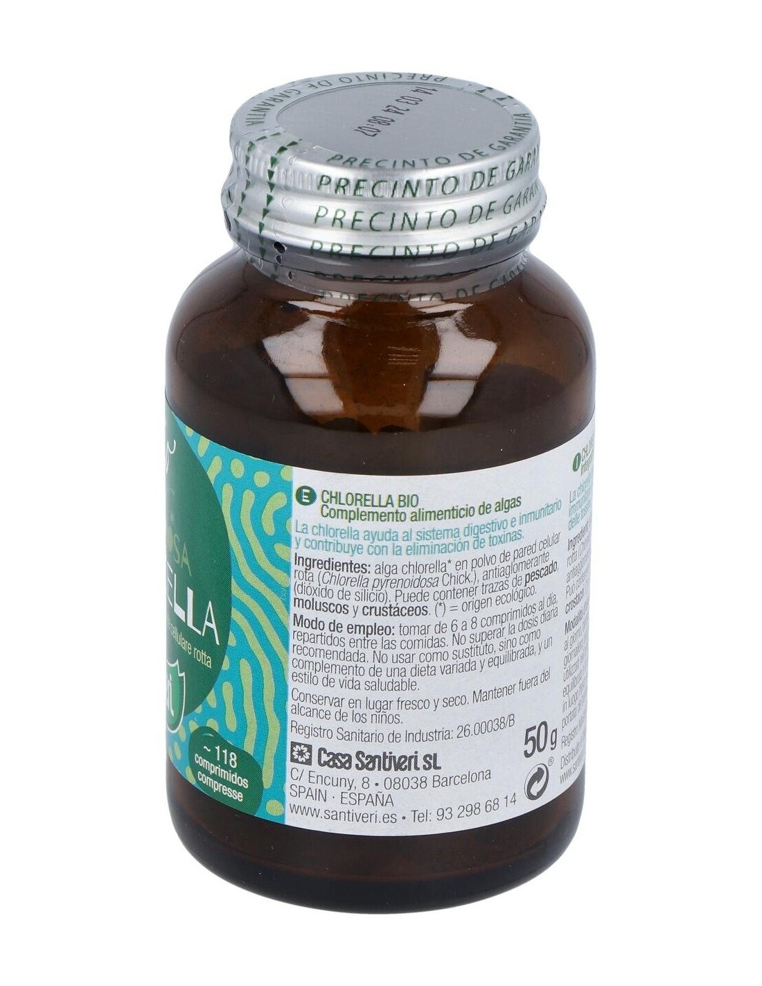 Complemento alimenticio a base de alga chlorella de pared celular rota. La chlorella ayuda al sistema digestivo e inmunitario y contribuye con la eliminación de toxinas.