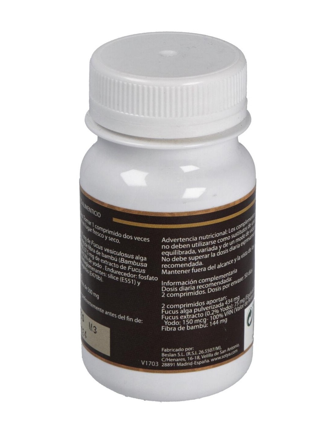 Sotya Fucus 500mg son unos comprimidos ricos en fucus que te aportarán todas las propiedades adelgazantes de este activo vegetal, ideal si tienes sobrepeso u obesidad. Dado su alto contenido en yodo, estimulará tu metabolismo.