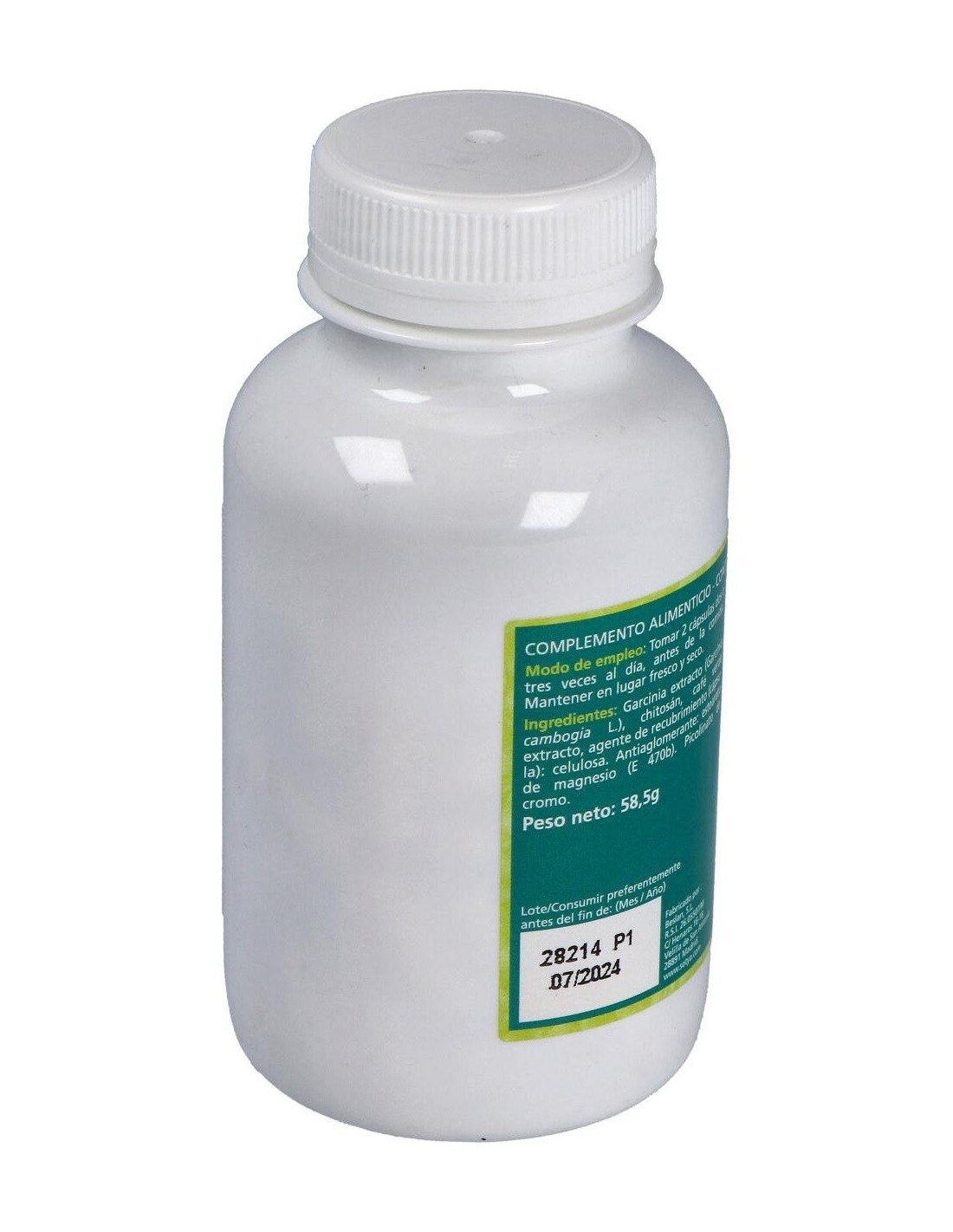 Cada cápsula contiene 214mg de extracto de garcinia cambogia (60% ácido hidroxicítrico), 170mg de chitosán, 145mg de extracto de café verde (45% ácido clorogénico), 6,7mcg de picolinato de cromo. Cápsula vegetal de celulosa.