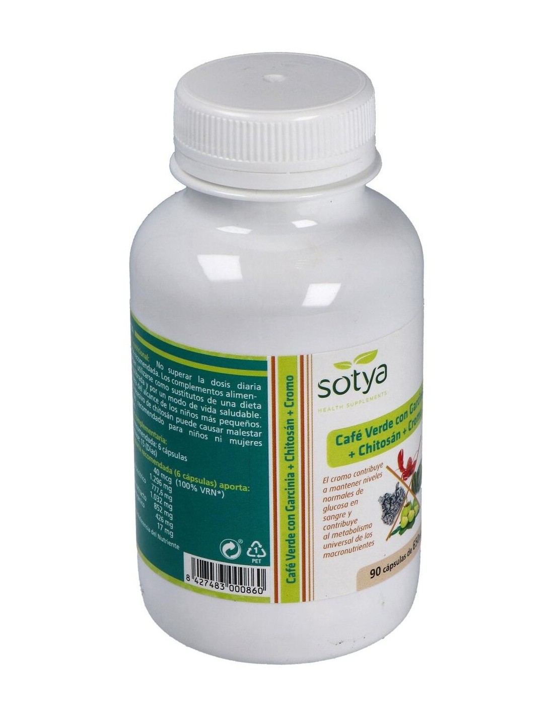 Sotya café verde + garcinia + chitosán + cromo 650mg es un complemento alimenticio que te ayudará a alcanzar tu silueta ideal en el contexto de una dieta hipocalórica o de adelgazamiento.