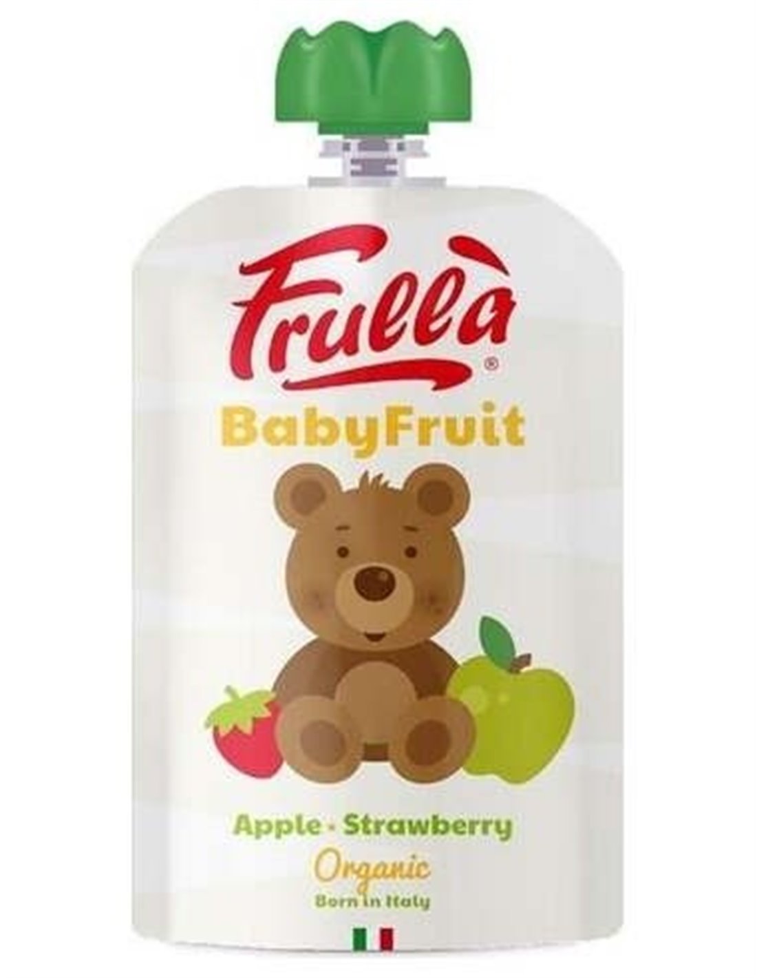 Puré de manzana y fresa procedentes de cultivo ecológico sin conservantes, aditivos ni azúcar añadido. Presentado en un práctico envase con cierre para disfrutar en cualquier momento del día. Ideal como merienda o desayuno para los más pequeños.