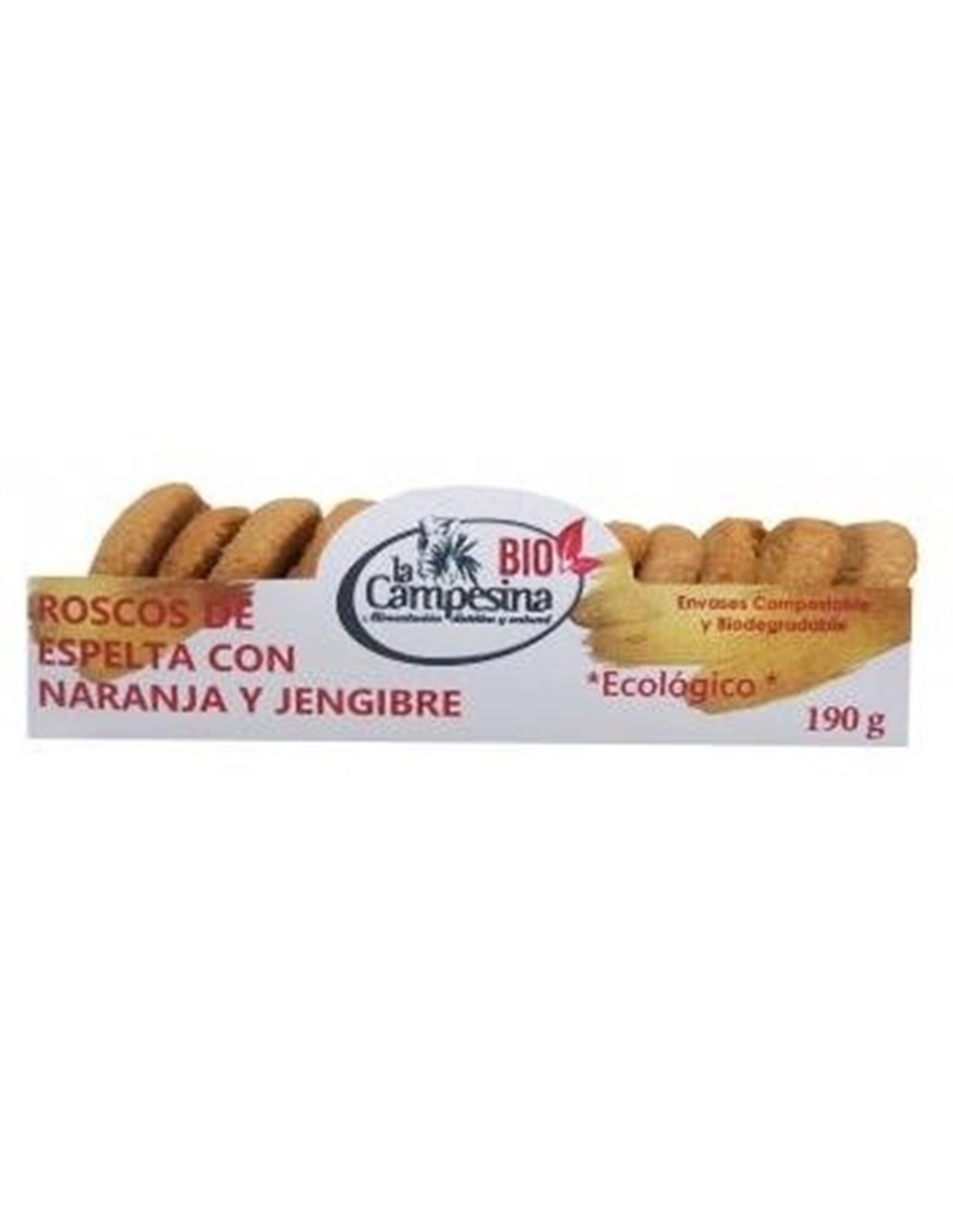 Roscos veganos. Envase 98% material biodegradable y compostable.