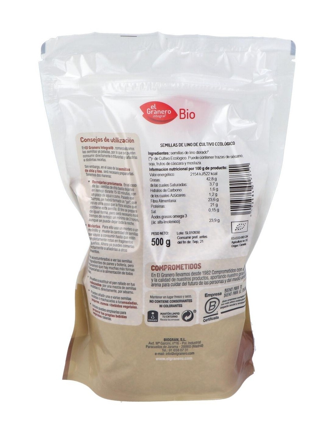 Semillas De Lino 500Gr. Bio de El Granero