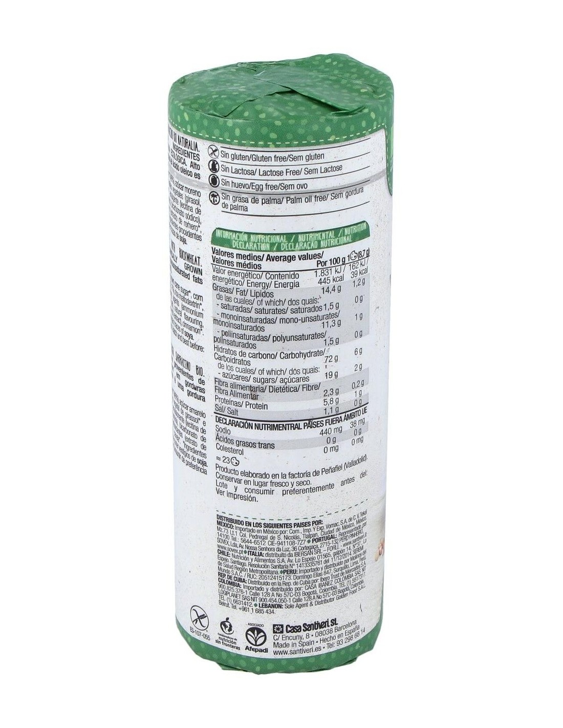 Harina de trigo sarraceno* (46%), azúcar moreno de caña integral*, almidón de maíz*, aceites vegetales (girasol, oliva)* (12,1%), maltodextrina de arroz*, emulgente (lecitina de girasol), gasificantes (bicarbonato amónico, bicarbonato sódico), sal marina, aroma natural, antioxidantes (extracto de romero*, extracto rico en tocoferoles), canela*.
