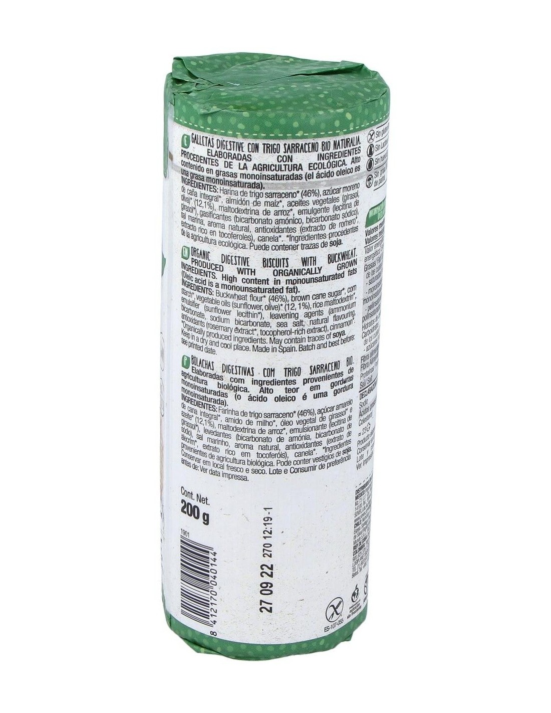 Saludables galletas veganas elaboradas a base de trigo sarraceno, extracto de romero y delicioso sabor a canela, procedentes de la agricultura ecológica, que son ideales para tomar en cualquier momento del día. Aporta una gran fuente de fibras, que ayudan a promover el tránsito intestinal.