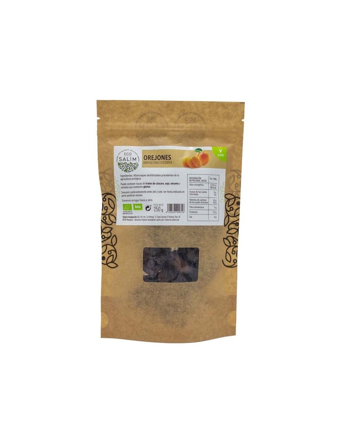 Pasas sultanas* (30%) (pasas sultanas* (99,5%) y aceite de girasol* (0,5%)), manzana deshidratada* (15%), albaricoque deshidratado* (15%), coco deshidratado* (14%), arándano mitades deshidratado* (10%) (arándano* (60%), azúcar de caña* (39%) y aceite de girasol*(1%)), piña deshidratada* (8%) y mango deshidratado* (8%). (*)= Ingredientes procedentes de la agricultura ecológica.