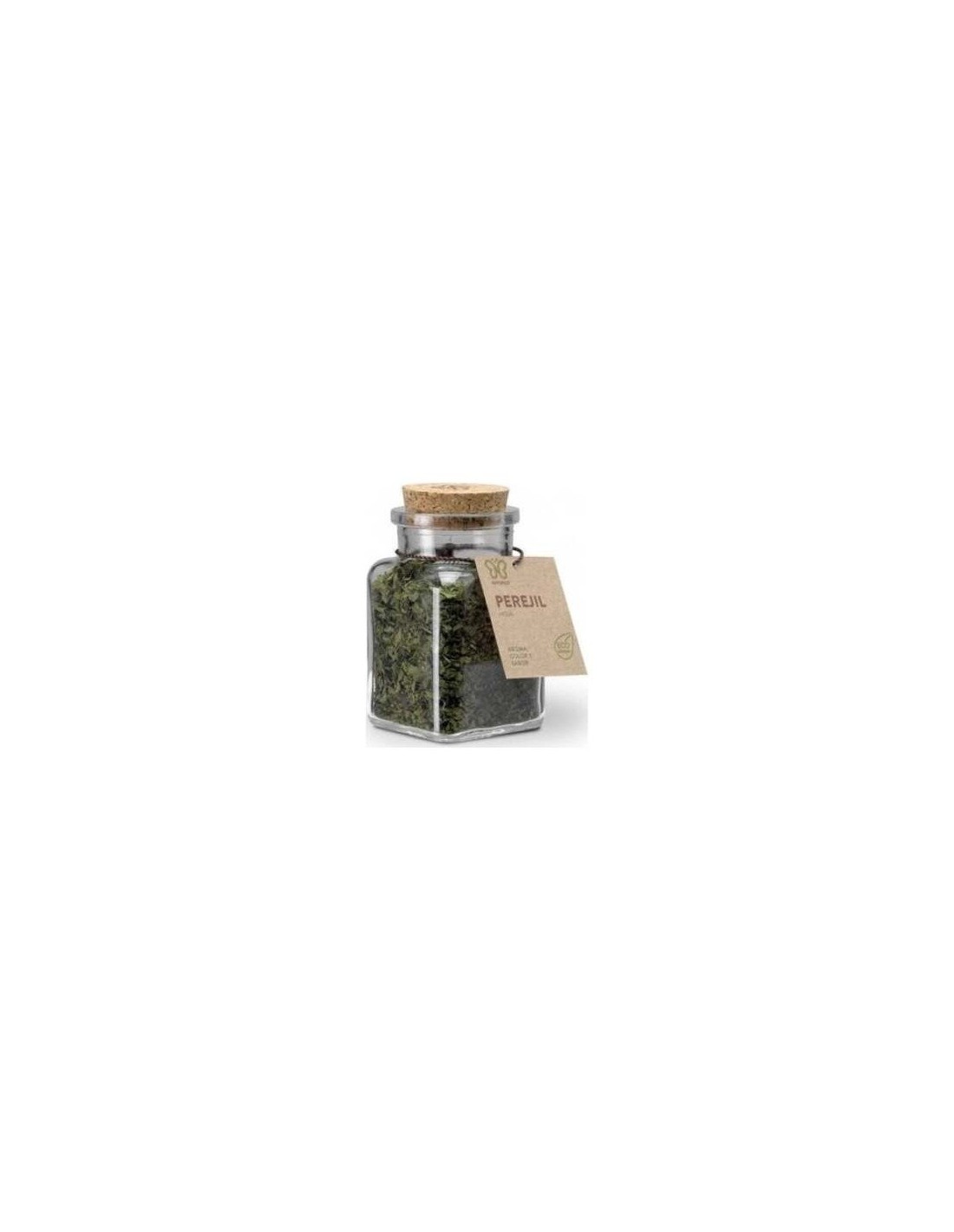Hojas de perejil secas procedentes de la agricultura ecológica, listas para la preparación de infusiones o para condimentar multitud de platos, que proporcionan propiedades que contribuyen a reducir la fatiga y el cansancio, entre otros.