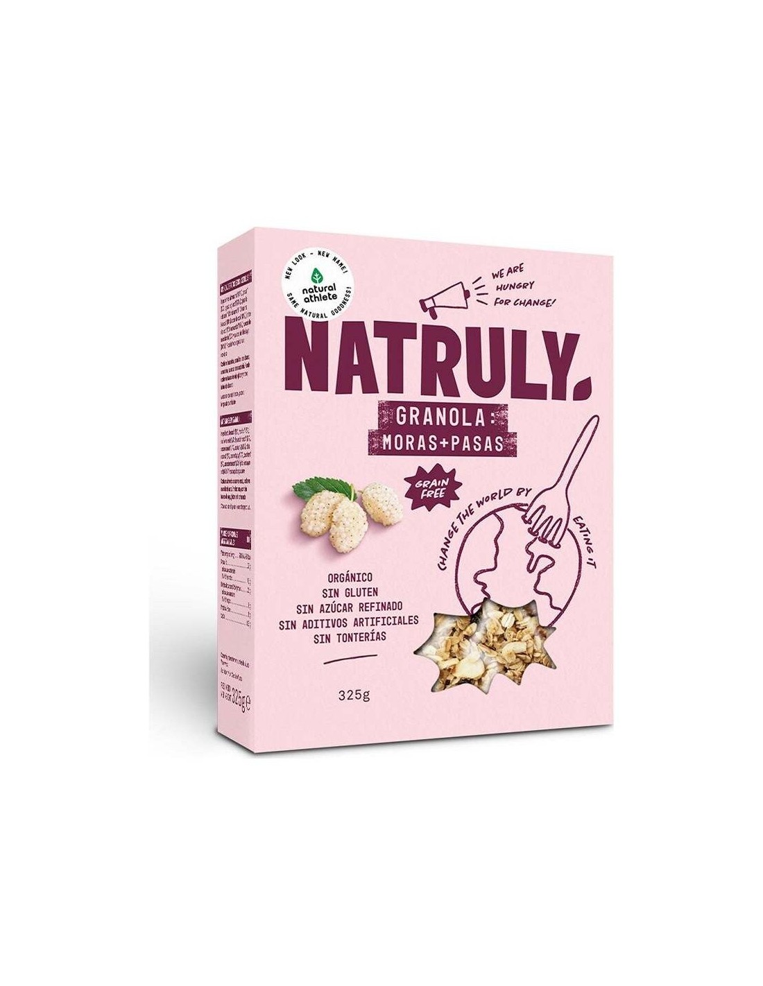 Granola de Moras y pasas de la marca Natruly, en formato de cartón con 325g. La granola de Natruly sin gluten es una alternativa saludable para los desayunos y meriendas. Elaborada con base de ingredientes 100% naturales y orgánicos, horneados a bajas temperaturas para preservar los nutrientes. Vegano. Sin gluten. Sin lactosa. Natruly tiene la misión de cambiar el mundo a través de la comida, elaborando productos totalmente naturales para mejorar la vida de las personas.