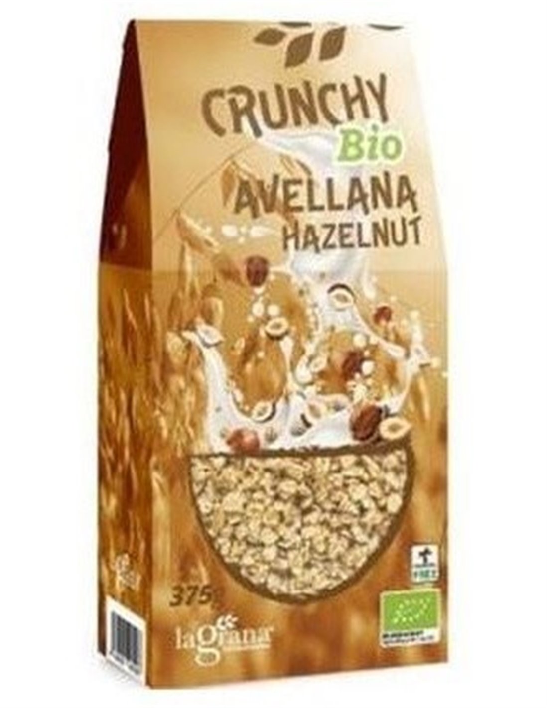 Copos de avena integrales finos* (44,7%)\ Jarabe de arroz* \ Avellanas* (10%) \ Cornflakes* (sémola de maíz*, jarabe de maíz*, sal) \ Aceite de girasol*\ Azúcar de remolacha*\ Espelta hinchada* \ Coco rallado*\ \ *Ingredientes procedentes de la agricultura ecológica.\ + Contiene gluten. Puede contener trazas de leche, huevo, soja, cacahuete, frutos secos y sésamo.