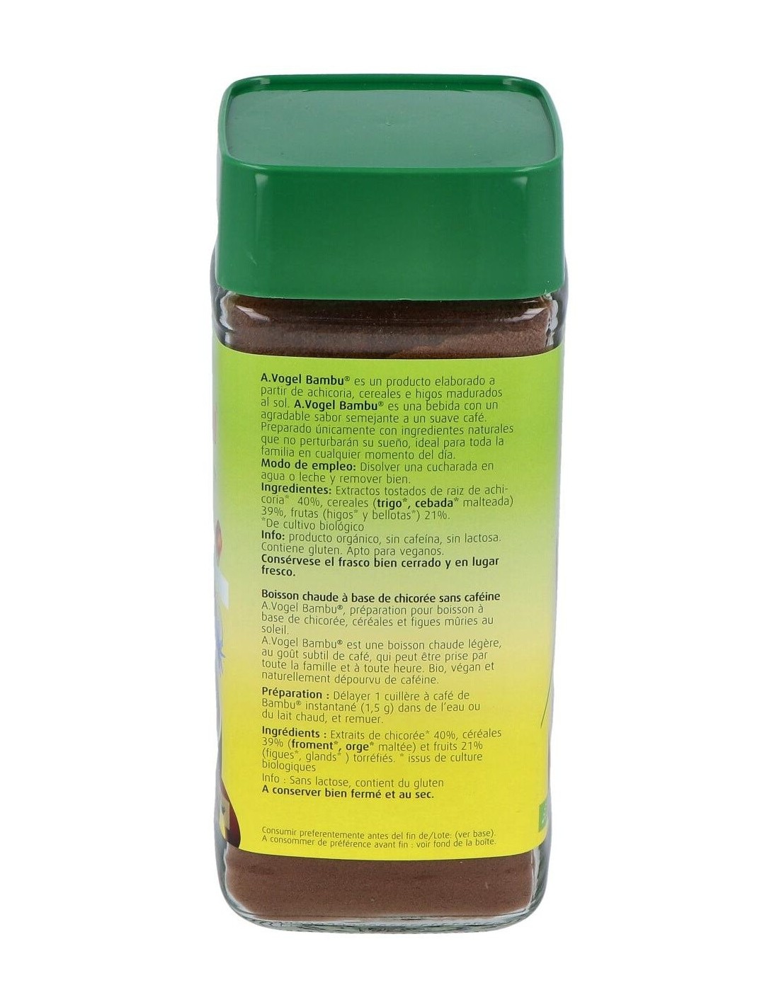 A. Vogel bambú instantáneo cereales + achicoria consiste en un extracto soluble con un aroma y sabor inigualable, similiar a los mejores cafes tostados.