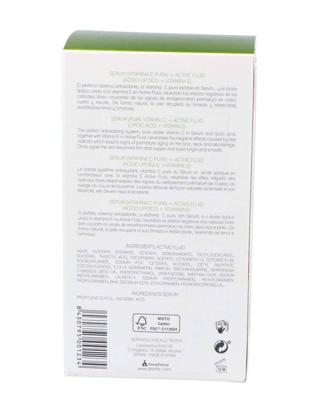 1 Active Fluid, 30ml. Crema fluida elaborada a base de ácido lipoico y enriquecida con vitamina E, que refuerzan la acción de la vitamina C y ayudan a prevenir el fotoenvejecimiento cutáneo.