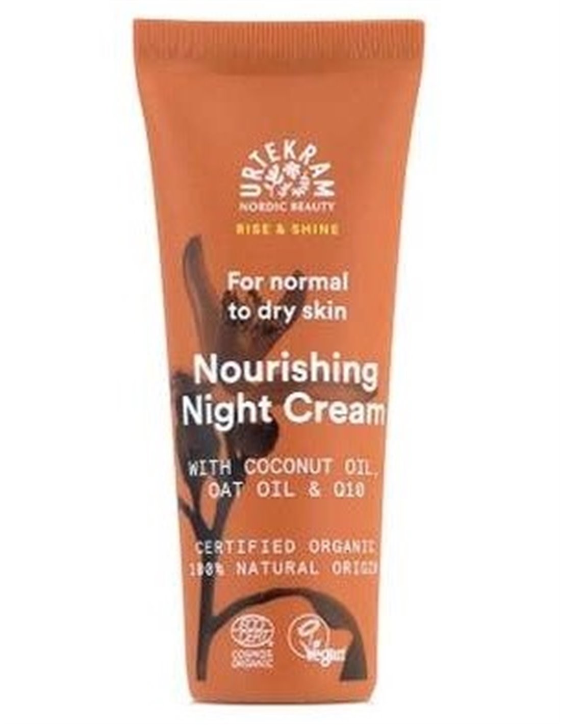 Acondicionador y crema de noche hidratante para pieles normales a secas, con aceite de coco nutritivo, aceite de avena, manteca de karité y antioxidante Q10. Ayuda a que la piel se refresque durante la noche. Certificado por ecocert COSMOS organic. Vegano.
