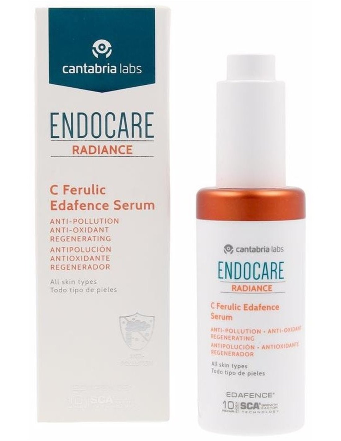 Endocare C Ferulic Edafense 30ml es un sérum facial antiedad, regenerador y antioxidante que combate el envejecimiento en todo tipo de pieles. Su fórmula combina el Ácido Ferúlico y la Vitamina C, que aporta acción regeneradora de SCA®, junto con la tecnología antipolución EDAFENCE®.