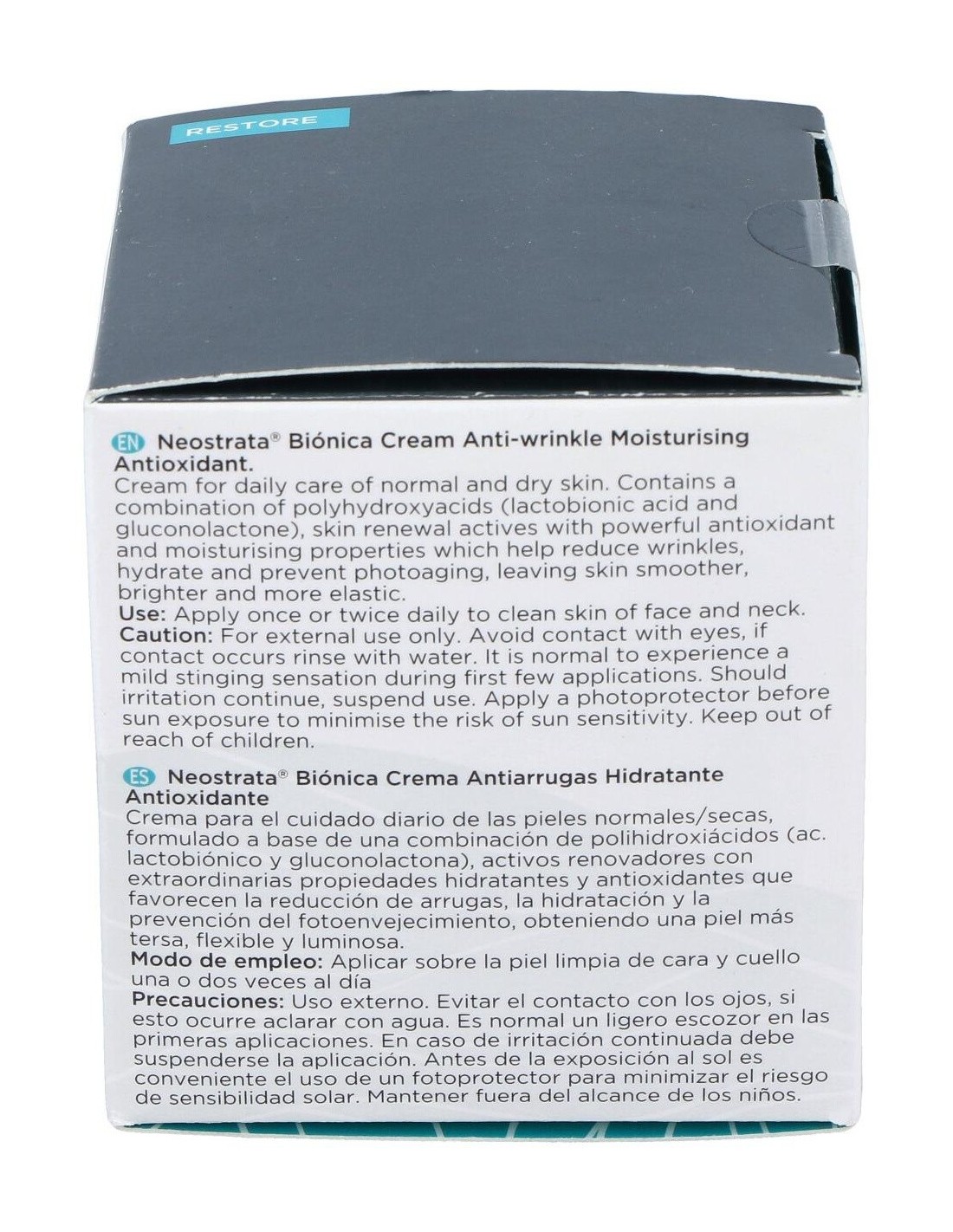 NeoStrata® Biónica crema utiliza una tecnología especial como tratamiento intensivo al fotoenvejecimiento de la piel. Gracias a su fórmula basada en ácido lactobiónico y alfahidroxiácido, consigue realizar una acción exfoliante suave, antioxidante y aportarle hidratación a nuestra epidermis.