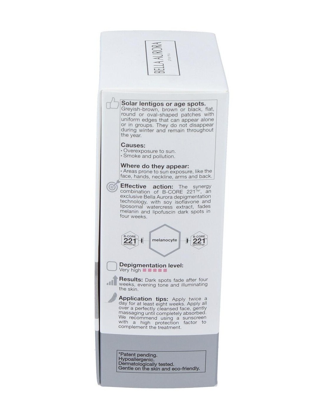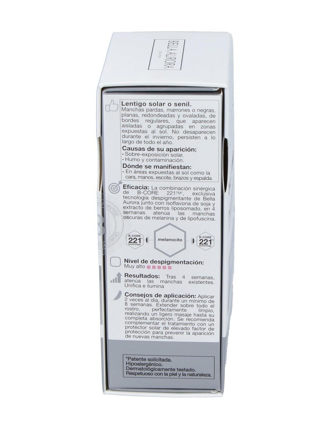 Tratamiento intensivo que reduce y elimina las manchas existentes y previene la aparición de nuevas de origen solar o del paso del tiempo, con una combinación de activos que incorpora la exclusiva tecnología despigmentante B-CORE 221TM, un sistema de encapsulación y liberación dirigida. Actúa directamente sobre las células productoras de melanina dónde libera íntegramente el activo encapsulado, obteniendo así una mayor eficacia.
