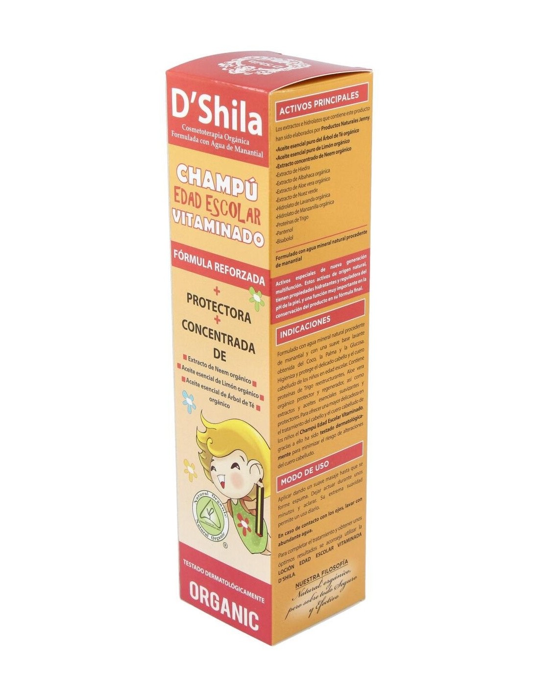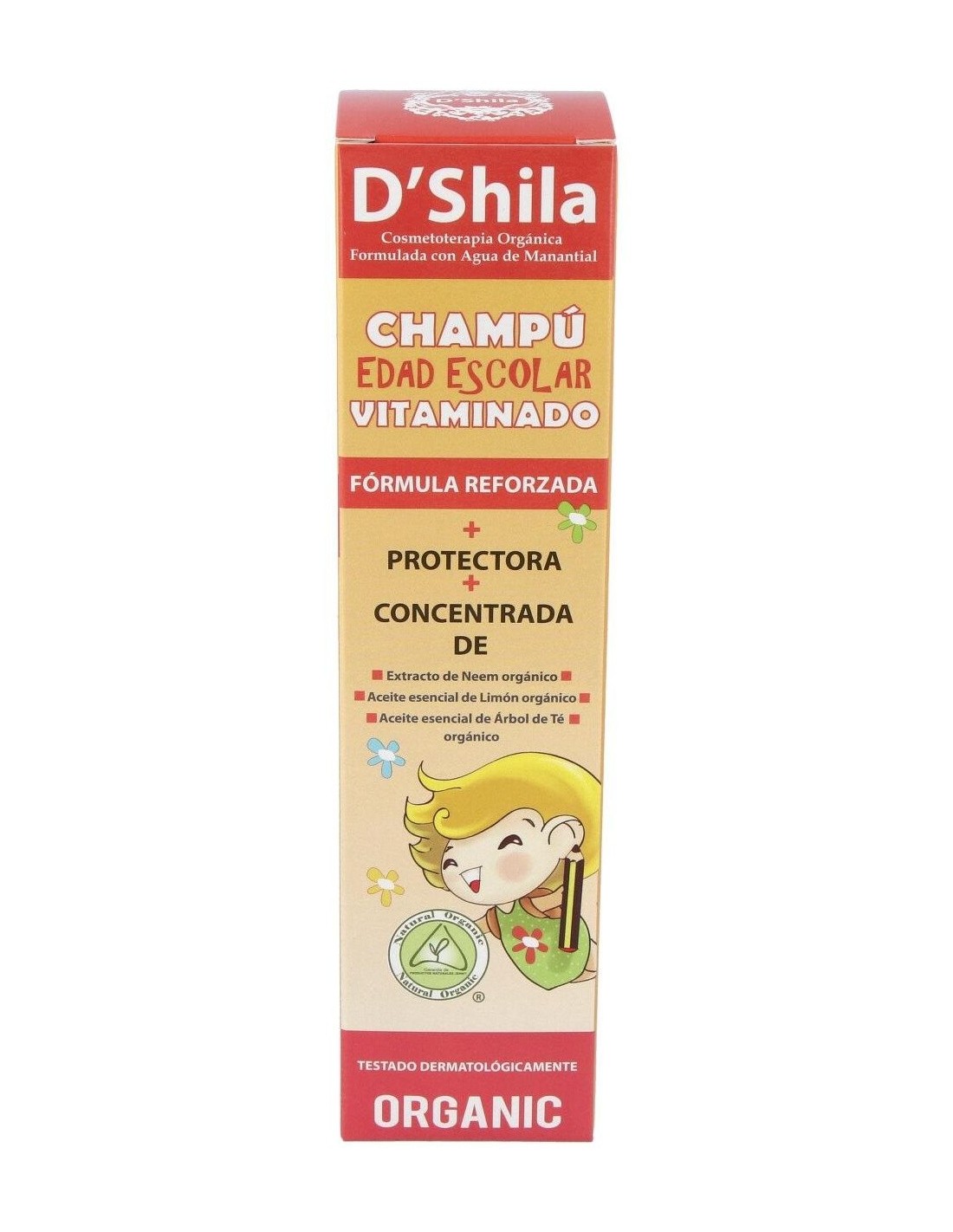 D'shila champú vitaminado especial edad escolar consigue mantener el cabello limpio y suave durante mucho más tiempo. Posee una suave base lavante, formulada con almidón de maíz, que consigue eliminar todos los piojos acumulados en la raíz.