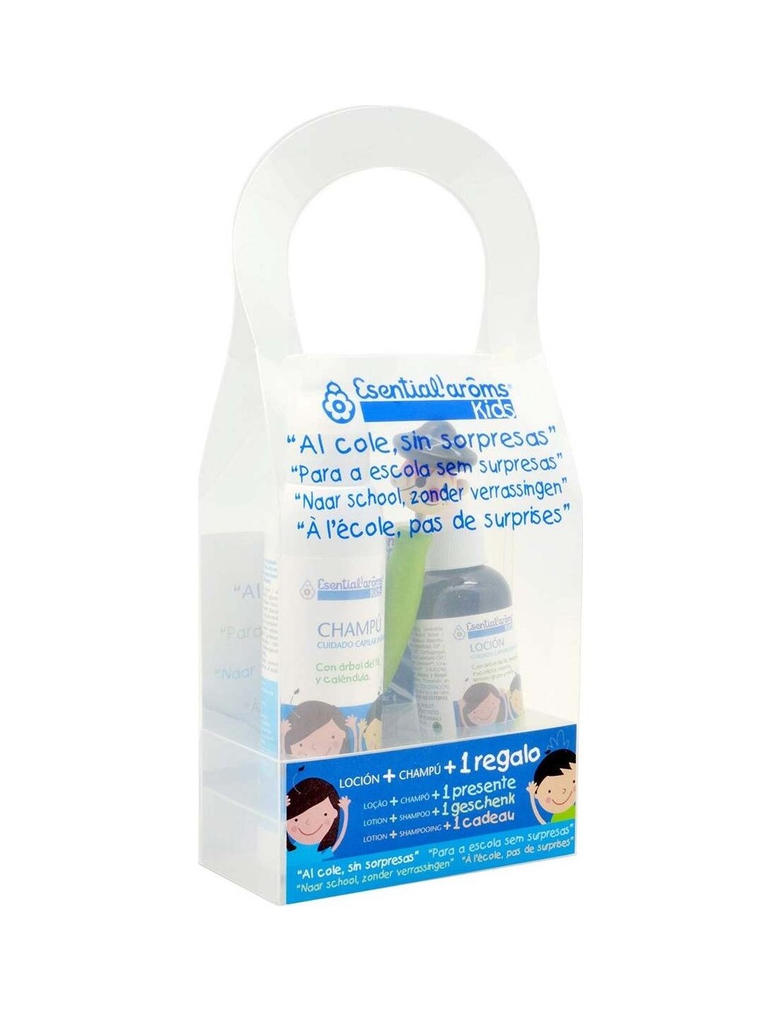 Contiene: Loción cuidado capilar infantil antipiojos + Champú cuidado infantil antipiojos + lendrera + regalo sorpresa.