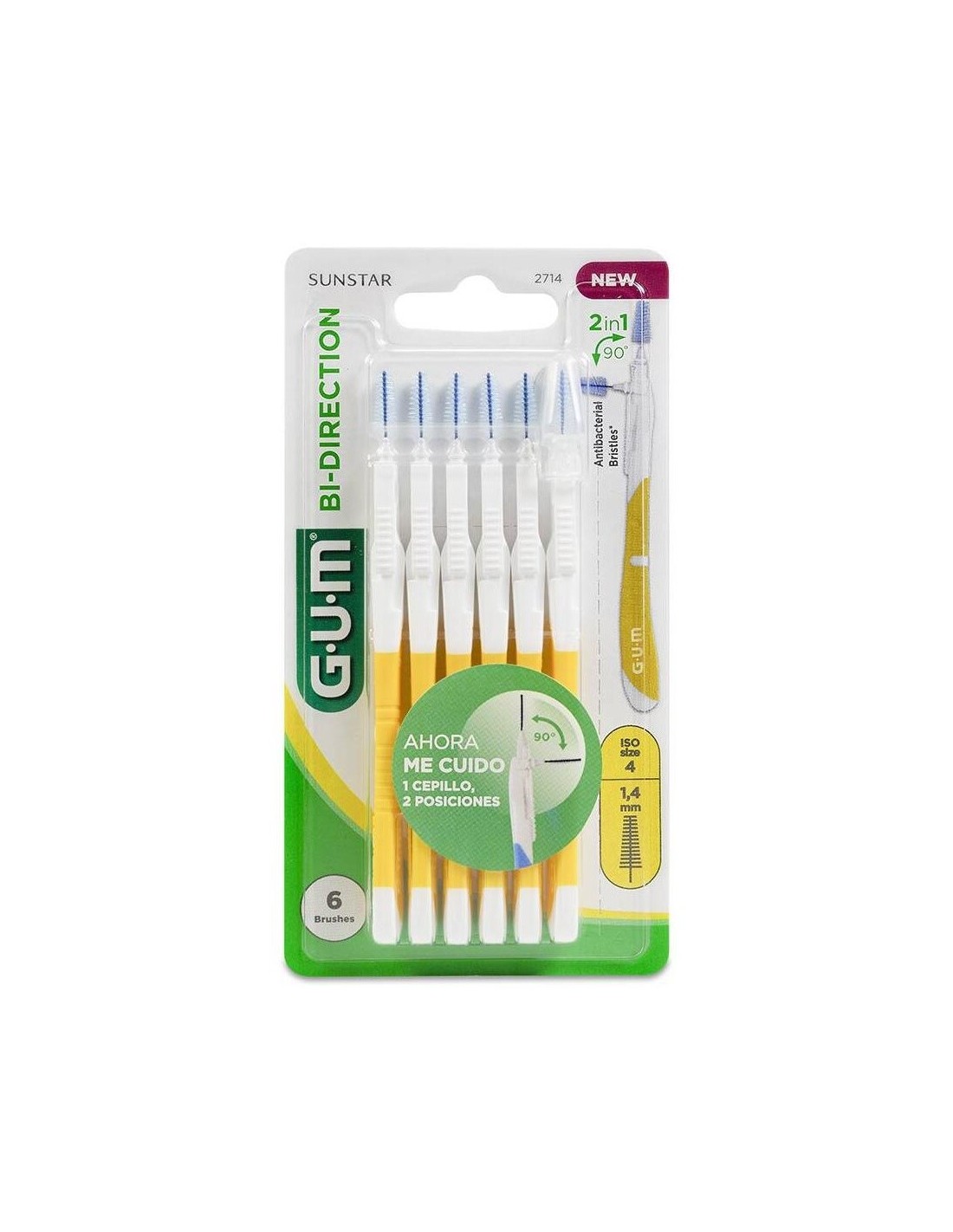 El cepillo interdental bidireccional GUM BI-DIRECTION ayuda a llegar de forma cómoda y fácil a todos los espacios interdentales. Gracias a la doble posición del cabezal en ángulo recto y de 90º elimina eficazmente la placa bacteriana y los restos de alimentos de los dientes frontales y posteriores. Además, los filamentos triangulares patentados de este cepillo interdental son capaces de eliminar hasta un 25% más de placa. También están recubiertos con clorhexidina, un eficaz antiséptico que impide que las bacterias se adhieran entre usos. Gracias a su mango ergonómico, alargado y antideslizante, los cepillos interdentales GUM BI-DIRECTION están especialmente indicados con puentes o implantes o en caso de padecer algún problema de manejo o movilidad (artritis o artrosis, por ejemplo).